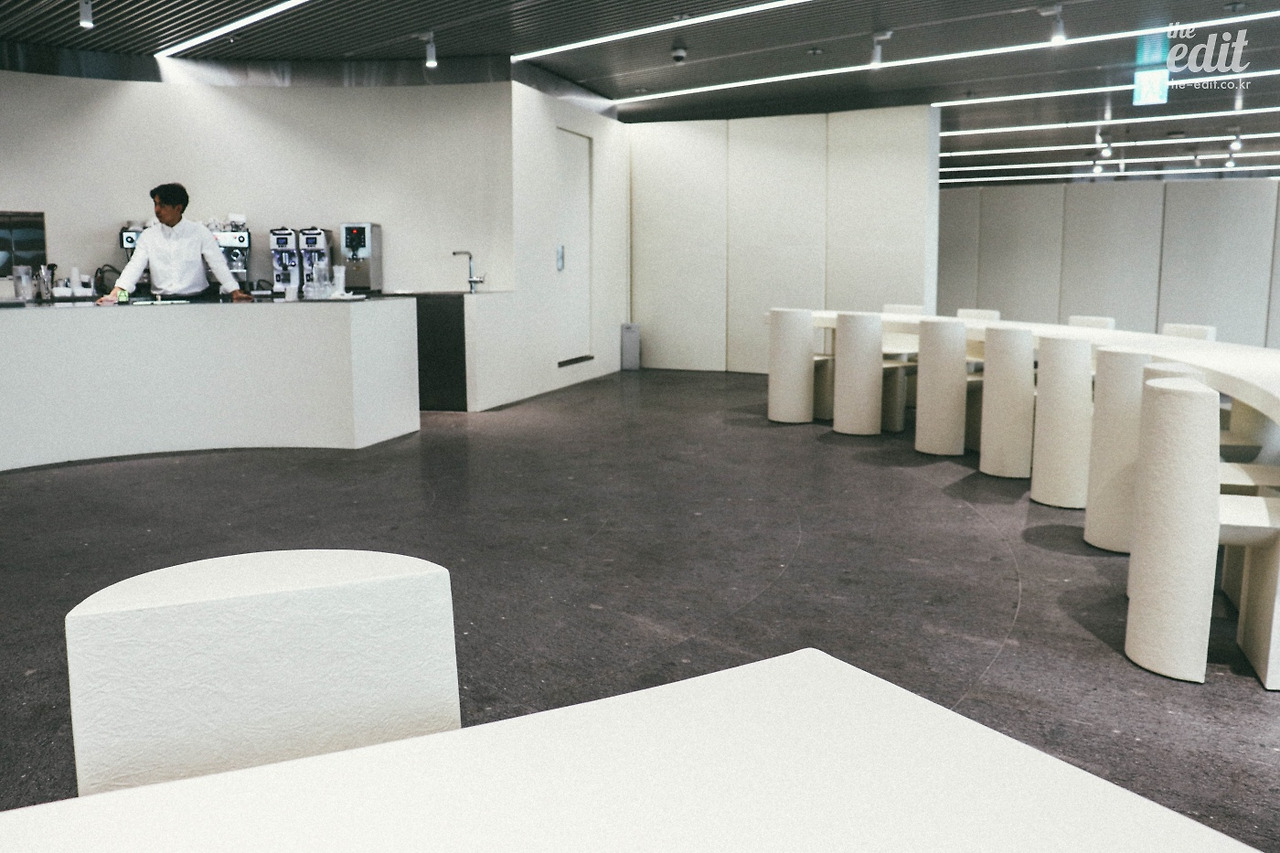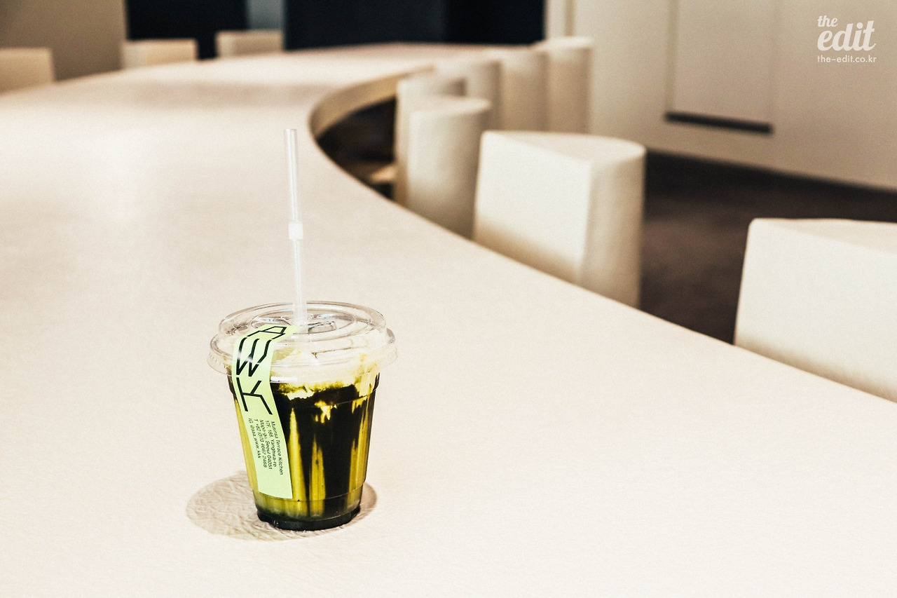 우주선을 닮은 듯한 Kitchen에서는 커피와 음료를 마실 수 있다. 주방인데 왜 디저트류는 없는 걸까? 시그니처 메뉴는 의외로 커피가 아닌 말차슈페너.