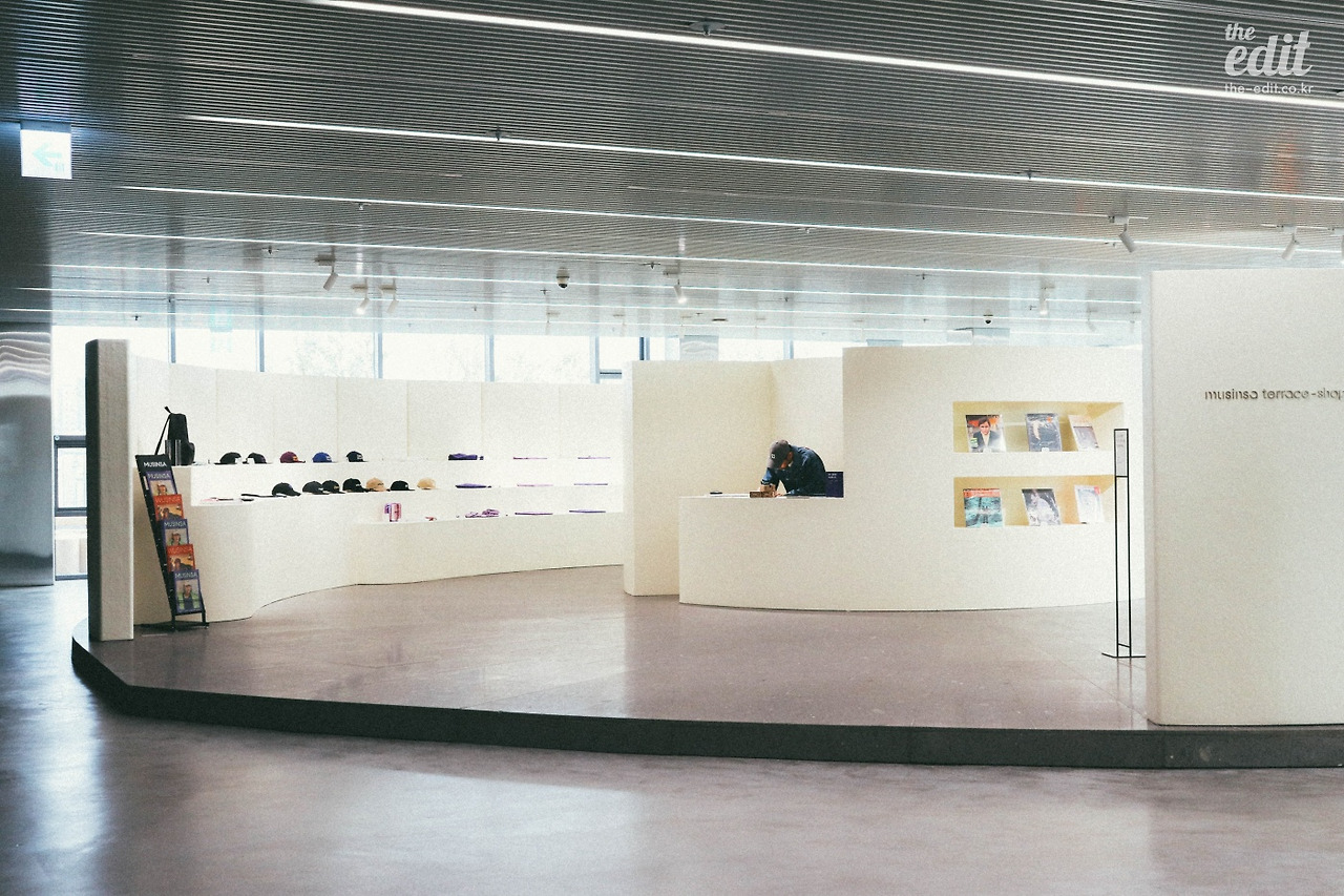 땡. 17층의 문이 열리면 무신사 테라스가 눈 앞에 펼쳐지는데, 800평이라는 거대한 크기(?)가 공간의 여유로움을 확보해준다. 전반적으로 아이보리 톤으로 단정하게 꾸며져 있어서 마음이 편안해지고. 음… 아래의 홍대 거리에는 복작복작 정신없게 사람들이 막 몰려다니는데 나만 여유로운 천국에 있는 것 같은 느낌…? 공간 구성은 크게 Shop, Kitchen, Park로 이루어져 있다.