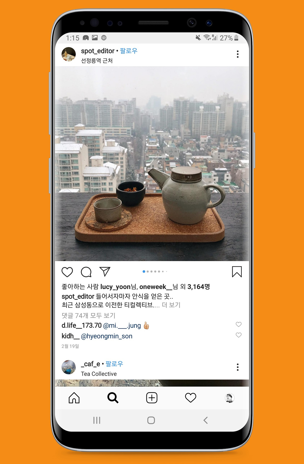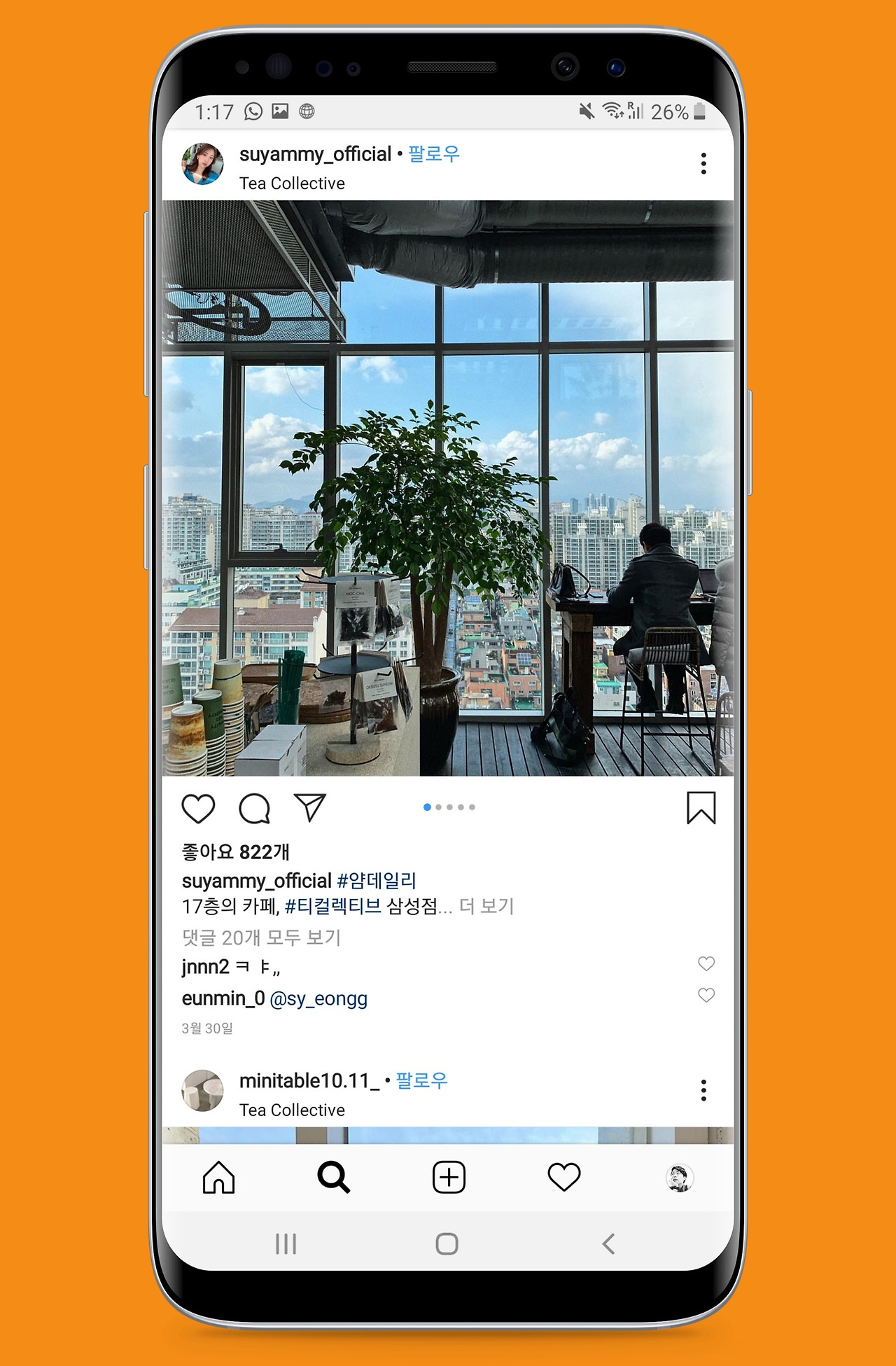 입구에 들어서자마자 나무와 식물의 기운으로 가득한 티컬렉티브는 삼성, 정확히 말하자면 삼성중앙역 근처에 위치하고 있다. 강남의 느낌이 물씬 나는 심플한 건물 꼭대기에 이렇게 내추럴한 느낌이 충만한 공간이 있다니.