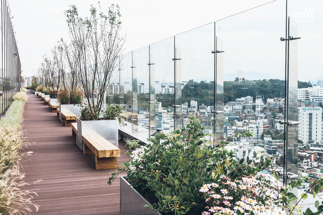 워낙 무신사 테라스가 크다 보니 의자도 많고 앉을 곳도 많고, 심지어 끝쪽 공간은 넓다랗게 비어(?)있다. 게다가 17층은 홍대 인근에서 유일한 초고층이다…!