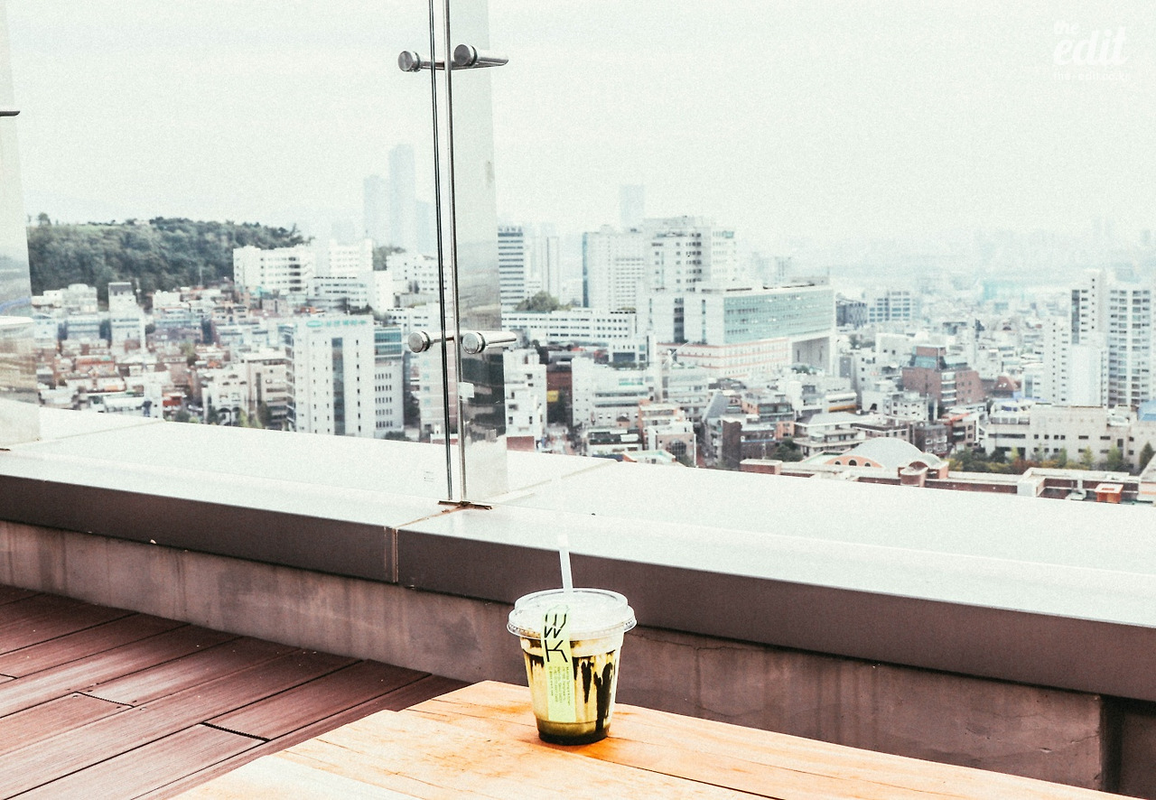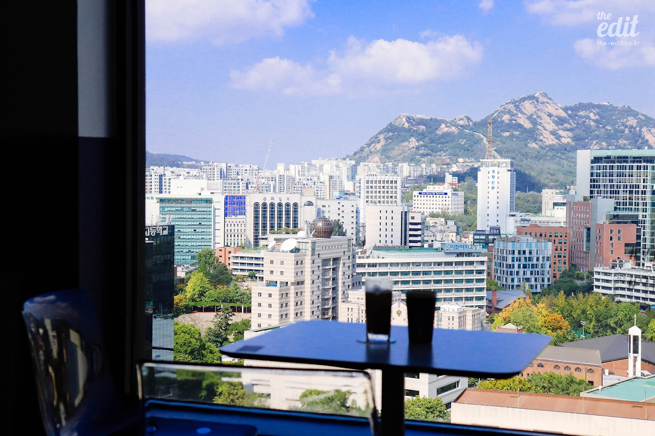 그리고 카페에 들어서 창가에 자리를 잡았을 때, 창밖으로 펼쳐지는 풍경에 순간 멈칫했다. 강남이 아니라 시청처럼 오래된 서울 시내에서 17층은 꽤 높은 편이다. 그래서 그런지 내 시선 아래로 쭈욱 펼쳐진 건물들의 풍경이 한눈에 들어왔다. 너무 번잡하지도 그렇다고 아주 단정하지도 않은, 아주 서울스러운 시티 뷰.
