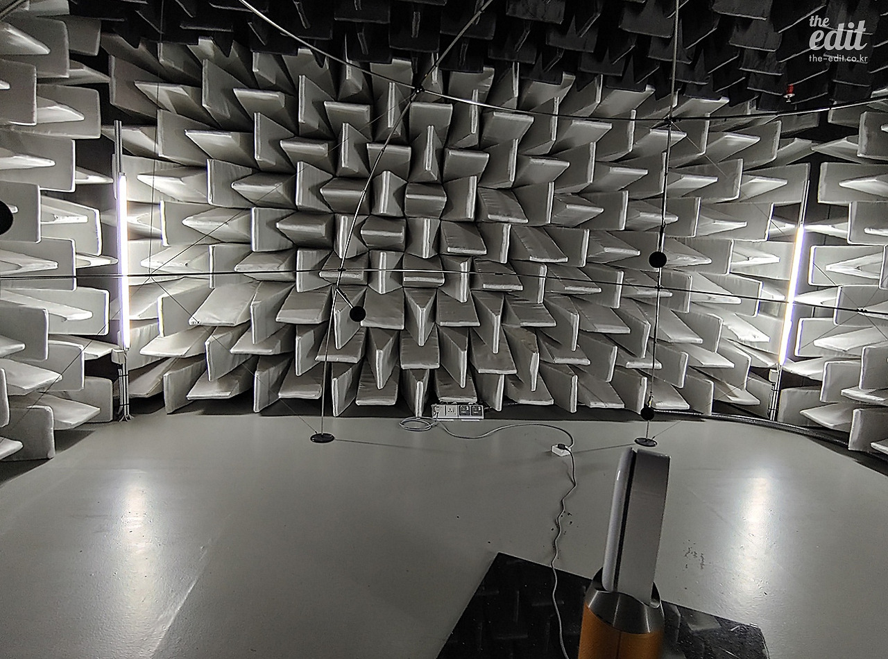 음향랩(Acoustics Lab)은 소음을 측정해 개선시키는 실험실이다. 실험실 전체가 흡음재로 덮여 있어 소음을 거의 완전히 제거한다. 여기서 10여개의 마이크와 탐침 등을 통해 제품 작동시 발생하는 소음을 체크한다. 그리고 결과적으로 성능에 영향을 주지 않고 소음을 최소화시키는 연구를 한다고 한다.