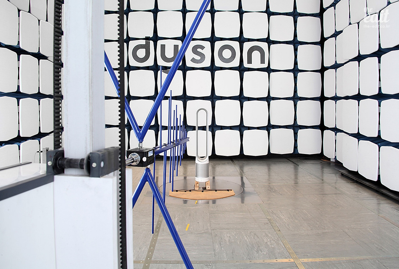 EMC랩은 사방 벽이 강철로 이뤄진 방이다. 이 안에서 다이슨 제품의 전자파 방출을 체크하고 다른 제품에 영향을 주는 양을 측정한다고 한다. 외부 벽이 강철로 이뤄져 있기 때문에 이 공간에 들어가면 스마트폰이 터지지 않는다. 스마트폰 중독에 빠진 아이들이나 현대인들을 가둬 놓으면 못 견딜 공간이다. 나도 못 견딜 것 같아 빨리 도망쳤다.