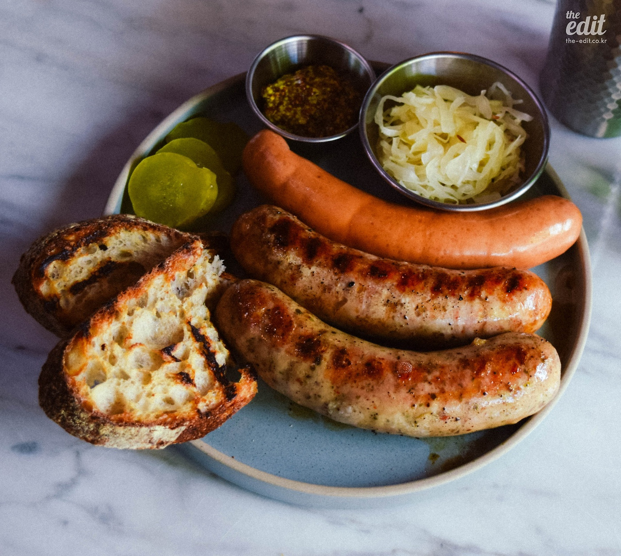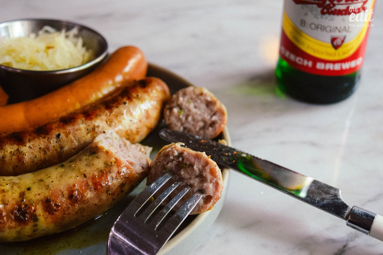 촉촉하면서도 고기의 묵직함은 그대로 품고 있는 식감이 첫입부터 든든함을 준다. 샤퀴테리와 궁합이 좋다고 추천받은 체코 맥주를 마셨더니 소시지와 맥주, 양쪽의 감칠맛이 살아나는 것 같다. 플레이트에 곁들여지는 사우어크라우트 역시 매장에서 직접 만든 것인데, 사우어크라우트는 ‘독일의 김치’라고 할 수 있는 양배추 절임이다.
