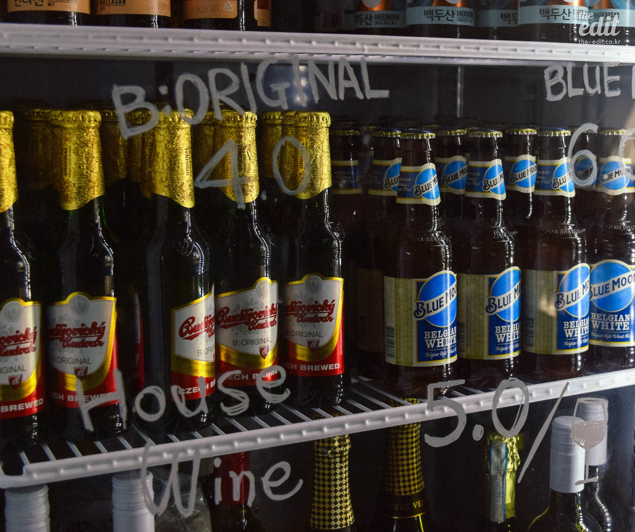 사실 매장에 들어올 때부터 나의 눈길을 사로잡았던 것은 바로 술이 진열된 냉장고다. 문에 쓰인 가격이 너무나 저렴했기 때문. 블루문 맥주는 6,000원, 문베어 브루잉의 크래프트 맥주 백두산·한라산도 5,500원이다. 심지어 하우스 와인도 겨우 오천 원! 여기에는 ‘샤퀴테리의 술은 싸야 한다’는 사장님의 철학이 깃들어 있다.