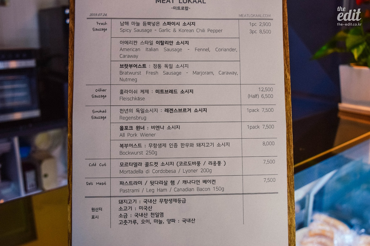 이건 건강을 고려해도 안심하고 먹을 수 있다는 뜻이기도 하지만, 지갑이 가벼운 손님들에게도 반가운 소식이기도 하다. 장기간 안정적인 파트너십을 구축해놓은 덕분에 저렴한 가격에 제품을 구입할 수 있으니까. 한 끼에 한 개면 충분할 것 같은 두툼한 생 소시지 3개, 가벼운 간식거리로 일주일 정도는 너끈히 먹을 수 있는 분량의 한우와 돼지고기를 넣은 복부어스트 소시지가 전부 8,000원 안팎이니까. 이름이 초면이면 어떤가. 친근한 가격 덕분에 가까워질 기회가 많을 것 같은 예감이 든다.