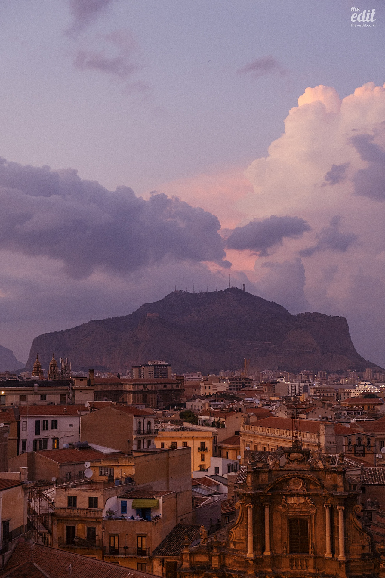 시칠리아에서 한 달간 함께한 인턴 에이미가 “아주 좋은 곳에 자리를 잡아놨다”며 메시지로 주소를 보내왔다. 한참 걸어가니 Hotel Ambasciatori라는 오래된 건물이 나온다. 로비로 들어가보니 작지만 꽤 괜찮은 호텔같다. 직접 나무문을 수동으로 닫아야 작동하는 로맨틱하고 공포스런 승강기를 타고 루프탑으로 올라갔다. 높은 건물이 거의 없는 팔레르모에 이런 장소가 숨겨져 있을 거라곤 생각도 하지 못했다. 주변 건물들이 다 낮은 덕에 탁트인 풍경이 눈에 들어왔다. 때마침 해가 질 시간이었다. 숨이 막히게 아름다웠다.