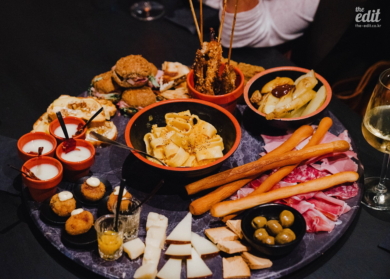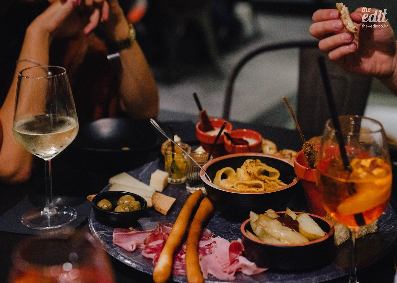 어떤 곳은 감자칩과 올리브, 차가운 햄 정도 나오는 간단한 구성부터 도저히 저녁을 먹을 수 없을 것 같은 화려한 라인업을 자랑하는 곳도 있다. 함께 마시는 술도 다양하다. 꼭 아페롤 스프리츠를 마실 필요는 없다. 와인부터 맥주, 칵테일까지 안주와 한 잔의 술을 합리적인 가격으로 제공하는 게 바로 아페리티보 문화의 핵심이니까. 쉽게 설명하면 우리나라의 해피 아워 같은 거라고 할 수 있겠다.