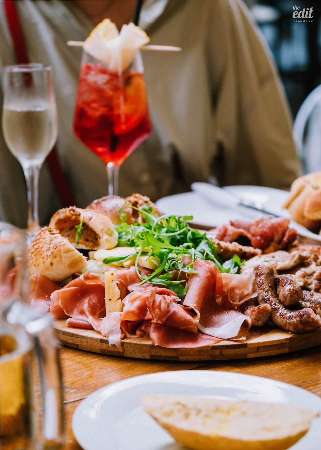 아페롤 스프리츠는 전 세계에서 가장 유명하고 힙한 아페리티보(aperitivo, 식전주) 중 하나지만, 사실 아페리티보라는 단어는 식전주 문화 자체를 일컫는 말이기도 하다.