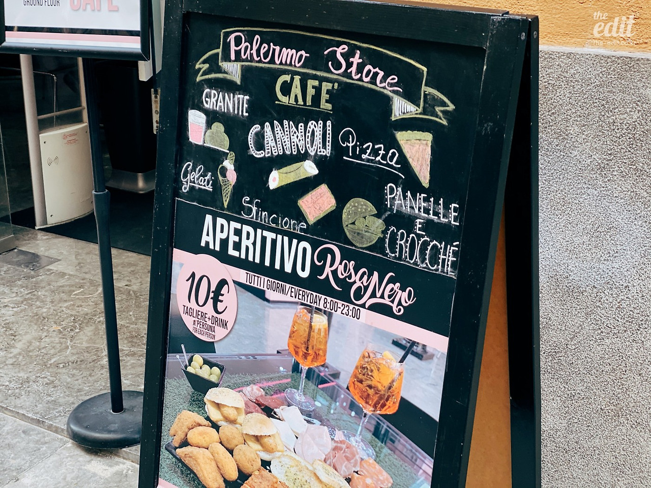 5시 정도가 되면 레스토랑이나 카페 앞에 아페리티보를 한다는 간판이 세워진다. 식전주와 함께 간단하게 먹을 수 있는 안주가 나오는 문화를 말하는데 가게마다 조금씩 차이가 있긴 하지만 8유로에서 12유로 정도로 즐길 수 있다.