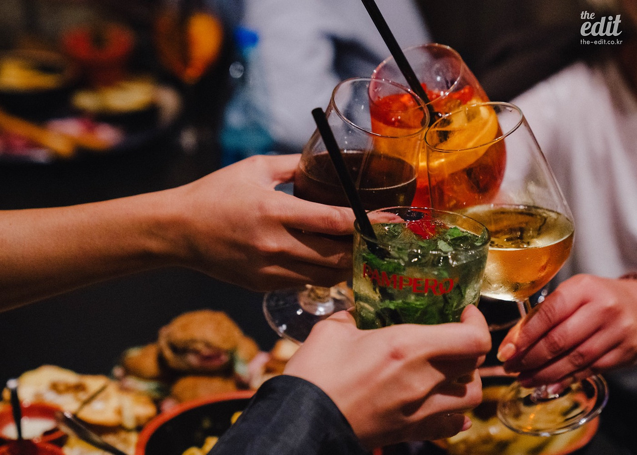 사실 레시피랄 것도 없다. 공식적인 레시피는 아페롤과 프로세코를 1대 1로 넣는 거지만, 독하다 싶으면 탄산수의 비율을 높이고 약하다고 느껴지면 아페롤 혹은 프로세코를 더 넣으면 된다. 그래서인지 김치처럼 레스토랑마다 맛도 모양도 천차만별이다. 하지만 묘하게 중독되는 맛이라는 건 공통적이다.