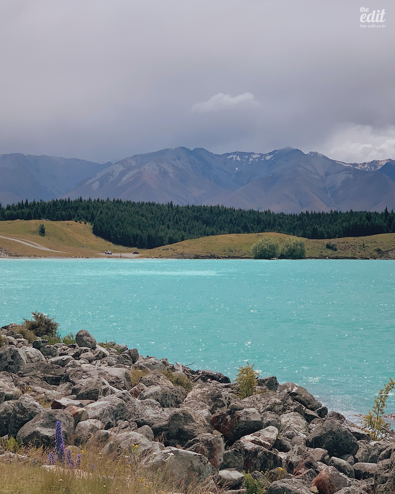그러다 어느 순간 조급하게 카메라를 드는 걸 포기하기 시작했다. 아마 여행 이틀차 테카포 호수를 처음 봤을 때였던 것 같다. 결국 너무 좋아서 비합리적인 동선을 감수하고 두 번이나 갔다. 길옆으로 펼쳐진 티파니 블루 색의 호수가 조금씩 보이기 시작하자 숨이 막혔다. 보면서도 믿기지 않는 비현실적인 풍경이었다. 빙하가 녹은 물이 모여든 이 호수는 너무 차서 물고기 한 마리도 살 수 없단다. 역시 정도를 넘어선 아름다움은 안에 독을 감추고 있나 보다. 친구와 나는 아무 말도 하지 않고 한참을 호수만 바라봤다.