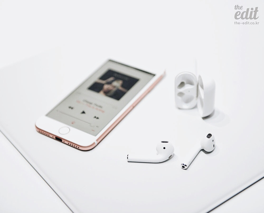 낯선 생김새만큼이나 사용자 환경도 전에 없던 방식이다. 귀에서 에어팟을 꺼내면 바로 음악 재생이 멈춘다. 광학 센서와 동작 감지 가속도계가 오디오를 제어하기 때문이다. 통화를 할 땐 음성 감지 가속도계가 내가 대화 중이란 걸 인식해 마이크에 들어가는 외부 소음을 거르고 깨끗한 음성을 전달한단다. 아직 통화 음질까지 체험해보진 못했지만 에어팟의 완성도는 놀라운 수준이다.