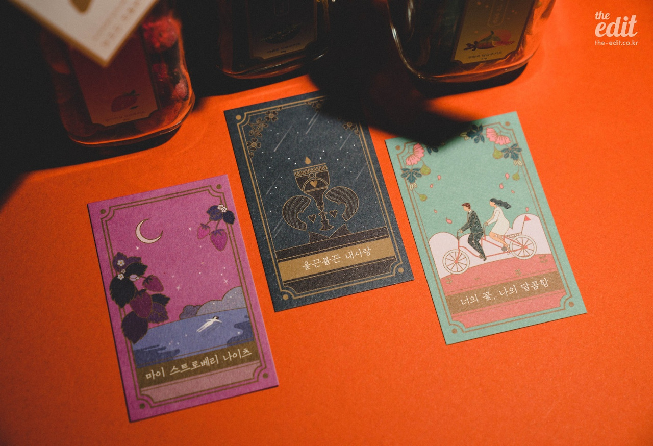 사소한 이유지만 귀여운 이름도 마음에 든다. 인삼주의 이름은 ‘어른이 되는 방법’, 야관문은 ‘울근불끈 내사랑’, 무화과는 ‘너의 꽃, 나의 달콤함’이다. 담금주는 어르신들이 좋아할 만한 예스러운 취미라고 생각했는데, 아기자기한 디자인과 네이밍을 보니 그런 편견이 조금씩 사라졌다.