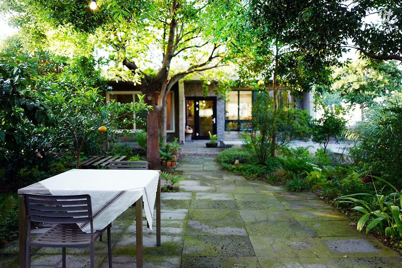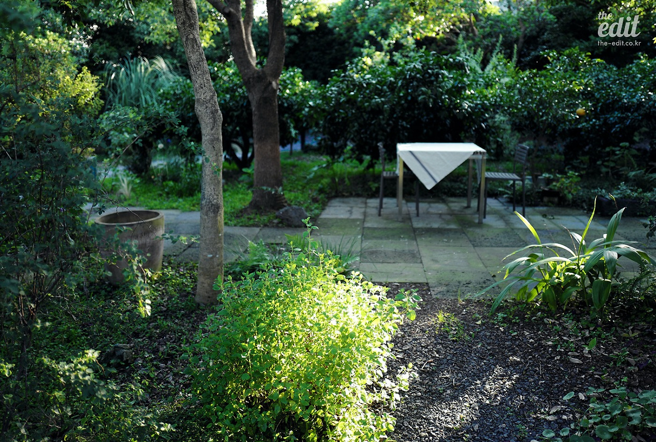 나의 도박은 성공했다. 인디언 썸머에 첫 발을 디디며 탄성이 나왔다. 오후 5시의 느긋한 정원이 나를 반겼다. 인디언 썸머에 들어서면 숙소 중앙에 300평의 정원이 있는데 제주에서만 느낄 수 있는 그런 정원이다. 육지에서는 잘 자라지 않는 귤나무, 올리브 나무, 금목서, 은목서, 로즈마리, 수국 등으로 가득하다. 이국적이면서 나무의 키가 높지 않아 편안하다. 그 무성한 나무 사이로 햇살이 비추고 있었다. 한적한 동네의 고요함과 온갖 나무가 내는 향기로 정원이 가득했다.