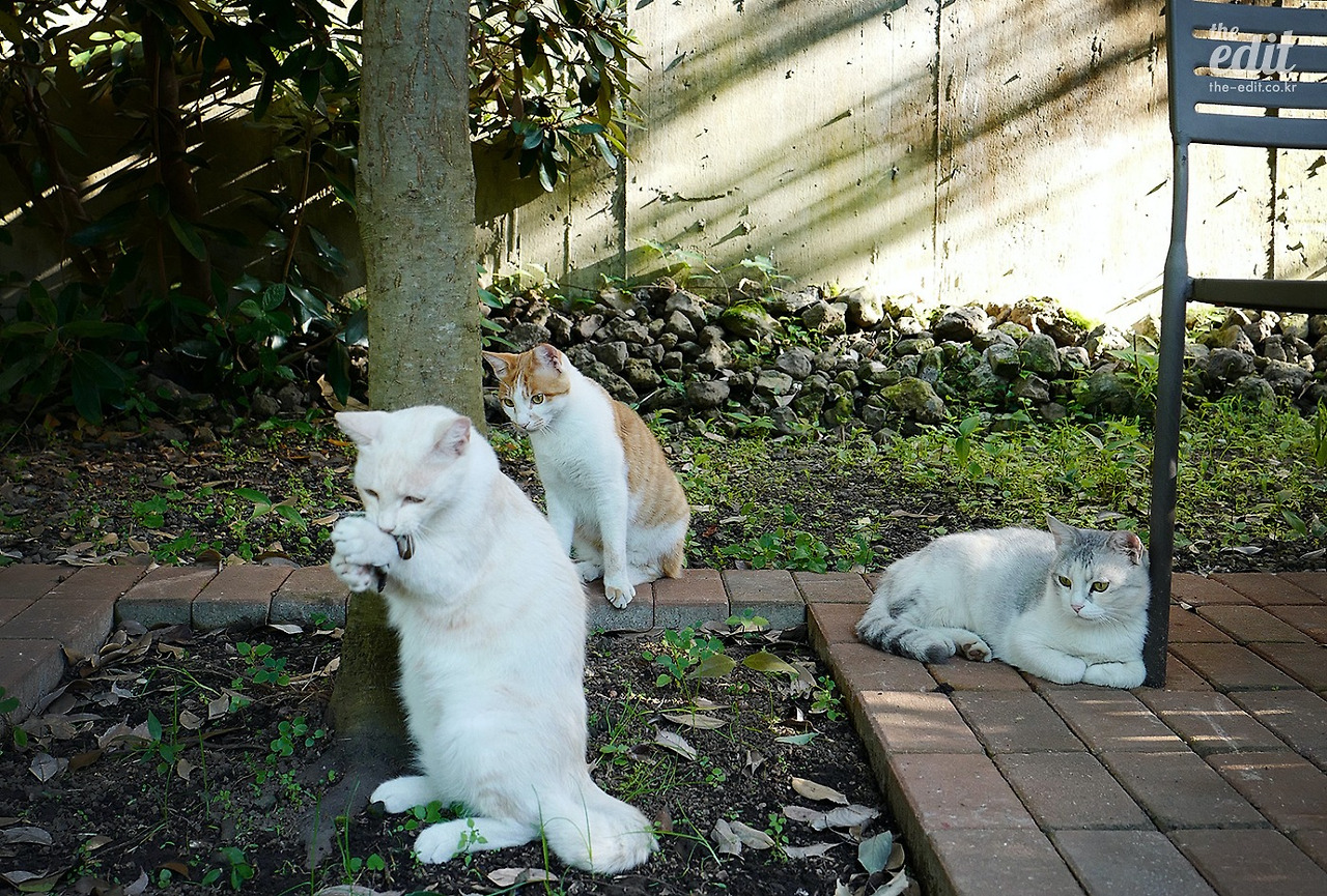 그 정원의 주인은 사실 내가 아니라 고양이들이다. 고양이 여러 마리가 마음껏 정원을 즐기고 있었다.