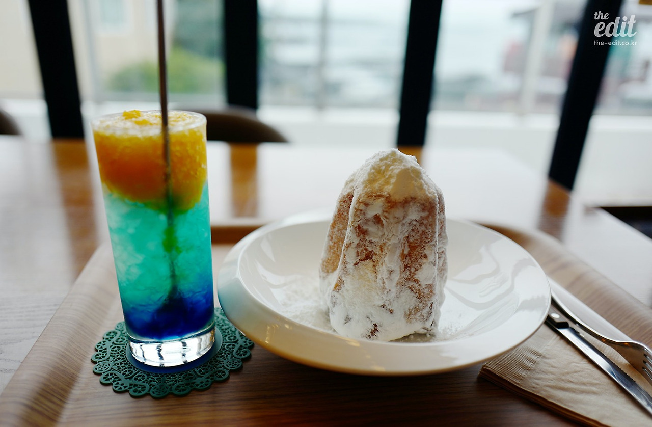 좀 걸었더니 지친다. 다시 공천포로 돌아가 동네에서 가장 먼저 보이는 베이커리 카페 <카페지니>로 들어갔다. 시그니처 메뉴인 공천포에이드와 한라팡도르를 시켜봤다. 맛있다. 제주도를 눈으로 즐기고 입으로 즐길 수 있다. 월정리 카페촌의 유명한 시그니처 메뉴인 ‘월정리 에이드’나 ‘볼스카페’ ‘채점석 베이커리’에서 먹던 한라팡도르와 맛이 거의 비슷하다.
