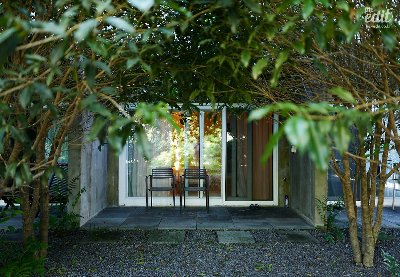 모든 객실은 정원으로 바로 나갈 수 있게 큰 창이 있다. 저 의자에 앉아 정원을 바라보면 된다.