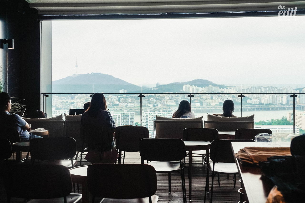 룸에 투숙하지 않고도 이 풍경을 즐길 수 있는 꼼수(?)도 있다. 바로 19층에 있는 카페를 방문하는 것. 카페인 충전을 위해 잠시 들렀는데, 역시 사람들은 빠르다. 평일 낮인데도 벌써 한강뷰 좌석은 만석이다. 이미 조용히 핫플레이스로 떠오른 느낌이다.