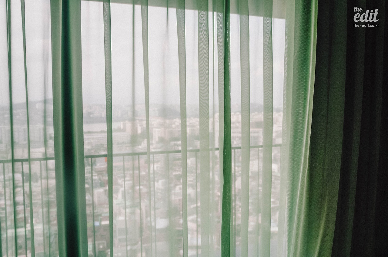 108개 다른 객실이 아니라 아뜰리에룸을 선택한 가장 큰 이유. 바로 테라스. 커튼을 젖히면 서울 시내가 그림처럼 눈앞에 펼쳐지는데, 비로소 룸 인테리어가 완성되는 느낌이라고 해야 할까. 객실이 18층이기도 하고, 앞 건물들이 낮아서 탁 트인 것도 좋았다.