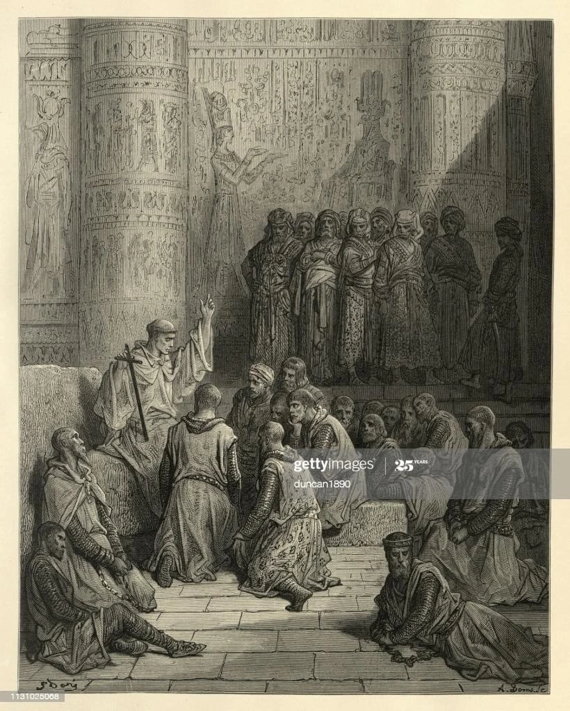 19세기 프랑스의 삽화가 구스타프 도레는 18세기에 출간된 조셉 미샤의 <십자군 이야기>에 수십장의 화려한 삽화를 그리는데, 첨부한 사진은 그 그림들이 가운데 하나입니다. 애석하게도 게티 이미지의 워터마크가 들어간 사진 밖에 찾지 못했지만....