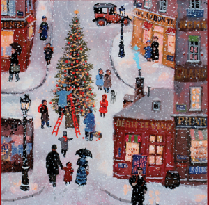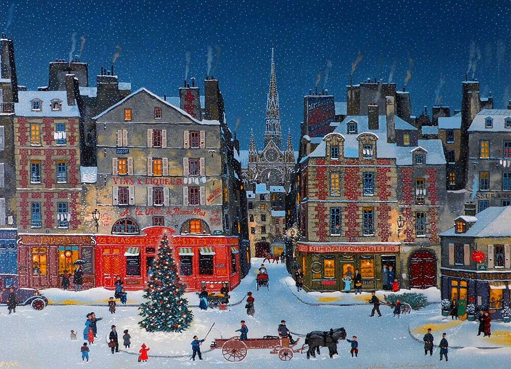 광장에 있는 큰 크리스마스트리도, 눈 내리는 마을에 뛰어노는 강아지, 아이들도, 파리의 에펠탑 앞에, 마을 골목 안에 있는 사람들이 예쁘게 담겨있는 그림들 1930년대의 파리의 아름다운 시절을 오롯이 만나고 함께 하는 선물 같은 그림들이다.