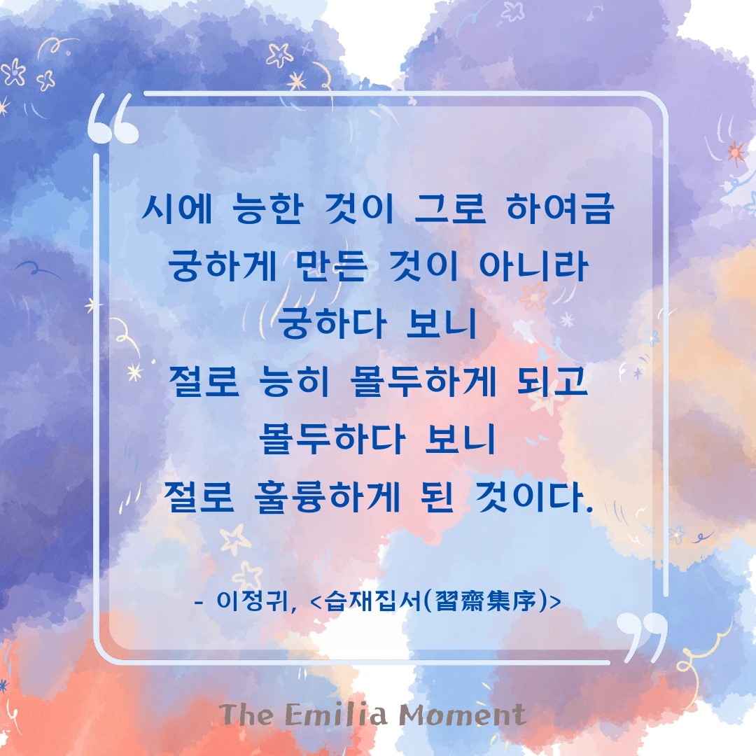 "시에 능한 것이 그로 하여금 궁하게 만든 것이 아니라 궁하다 보니 절로 능히 몰두하게 되고 몰두하다 보니 절로 훌륭하게 된 것이다."