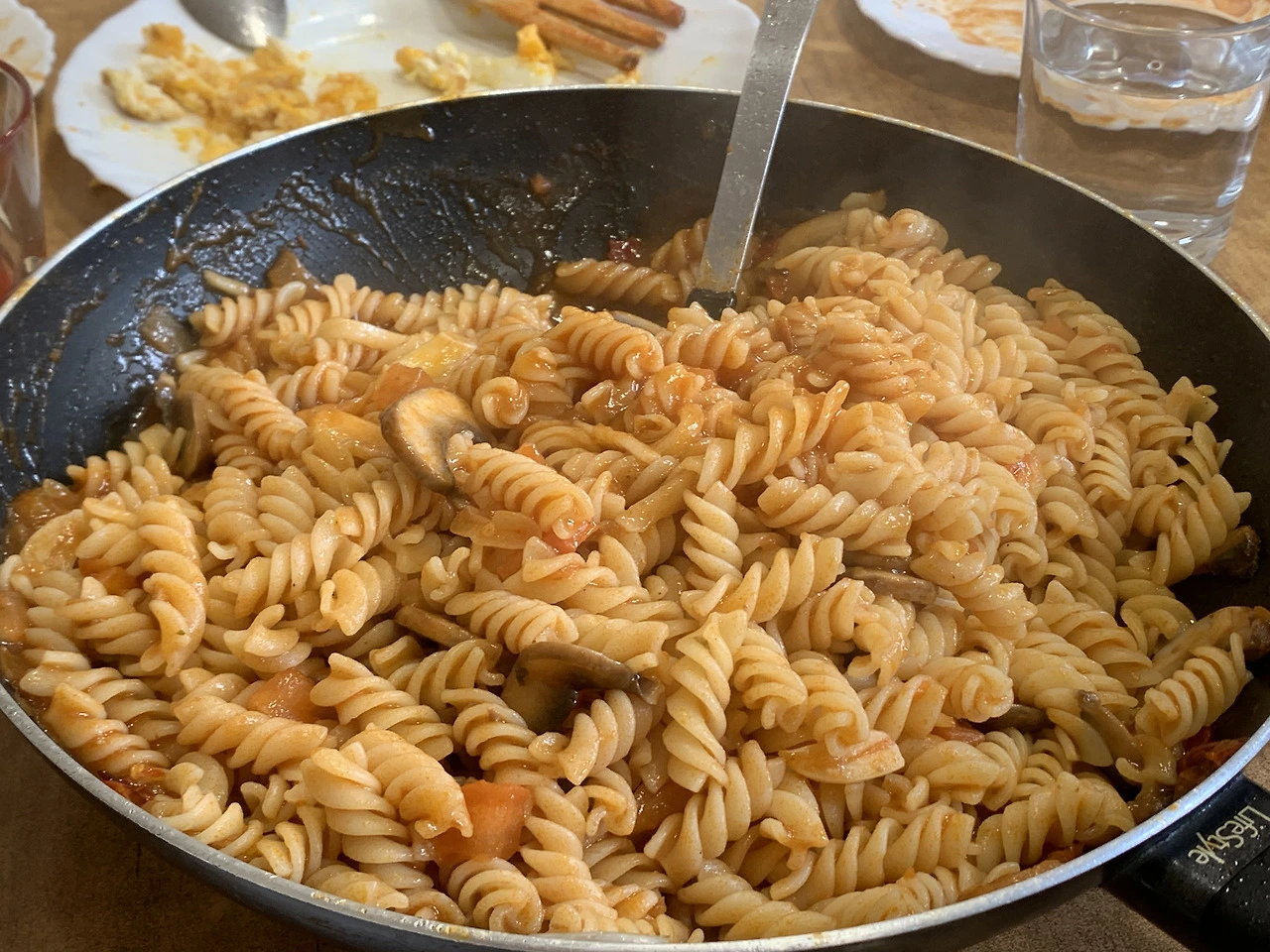 페페론치노를 가득 넣어 매콤한 파스타는 한국인 입맛에 딱이었다. 엄청난 양에도 첫 5인분을 빠르게 비우고, 푸실리면으로 2차 파스타까지 먹었다.