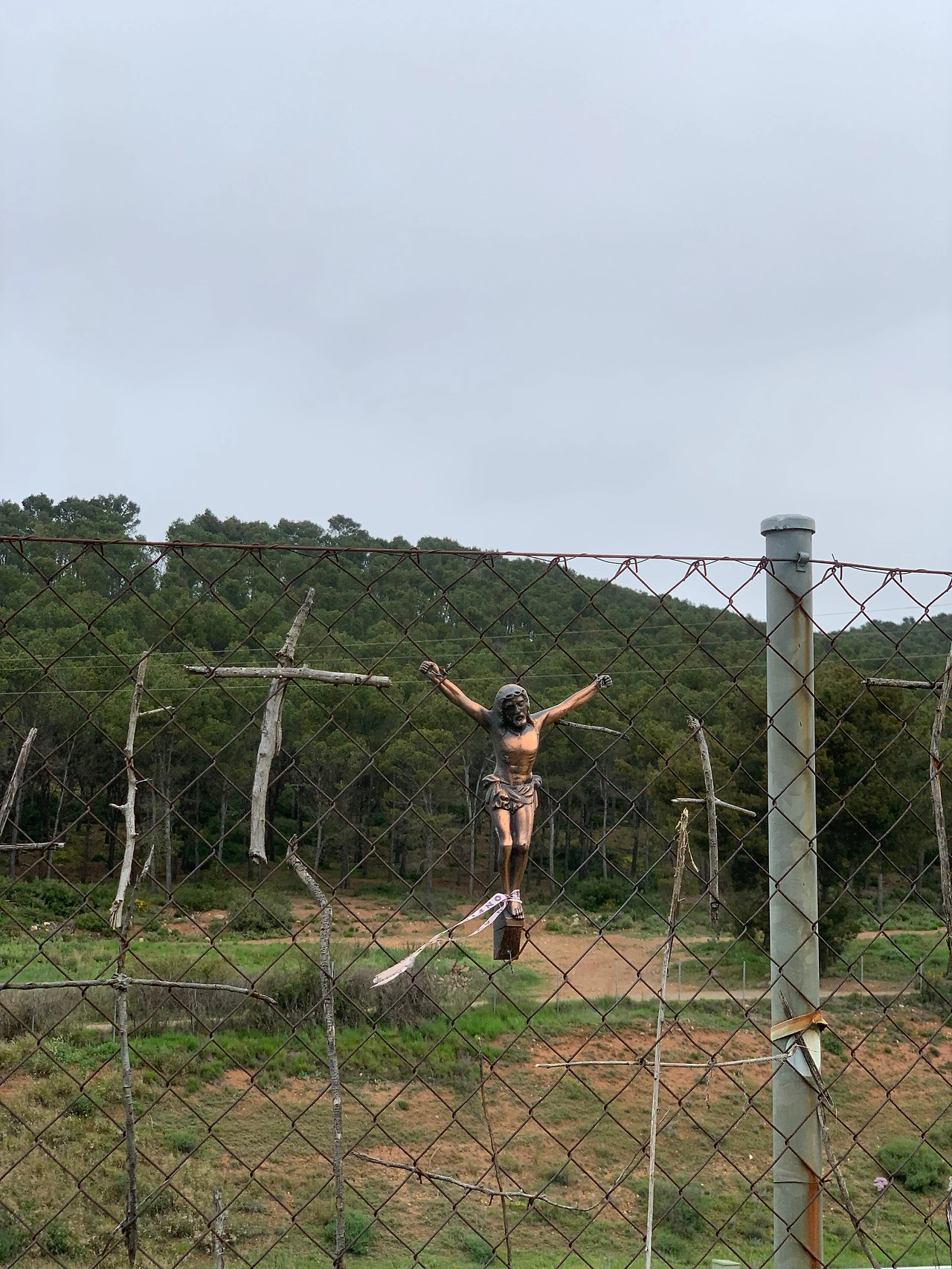 걷다가 십자가가 달려있는 철조망도 발견했다.