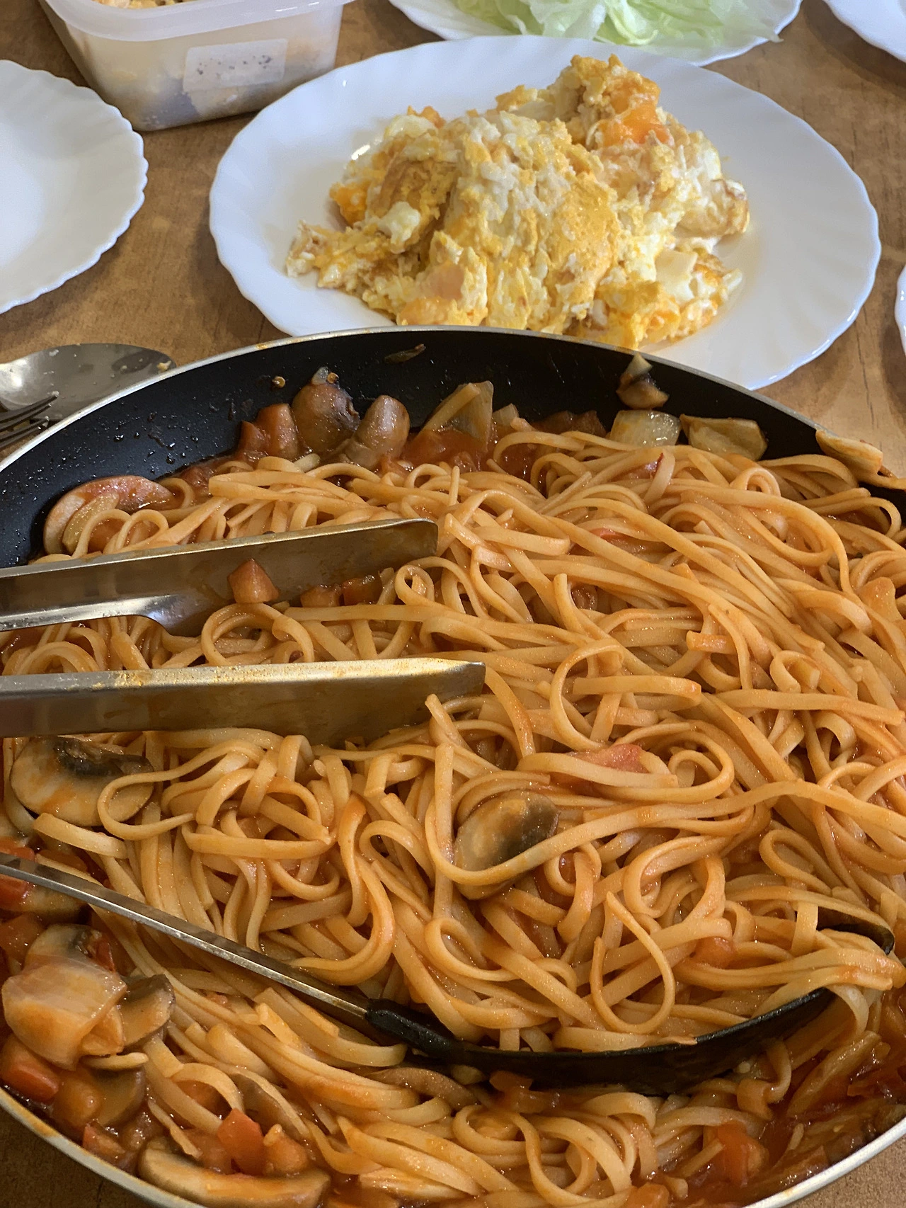 각자 역할을 나누어 마늘을 썰고 볶고 면을 삶고 스크램블에그를 하며 과식을 위한 준비를 완벽하게 마쳤다.