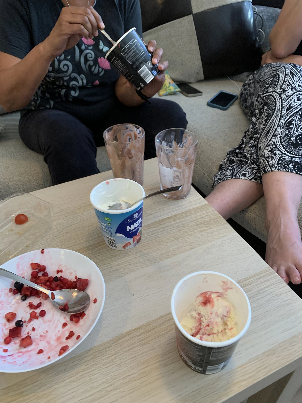 이후 2차로 킴과 하린더가 사 온 후식을 먹었다.