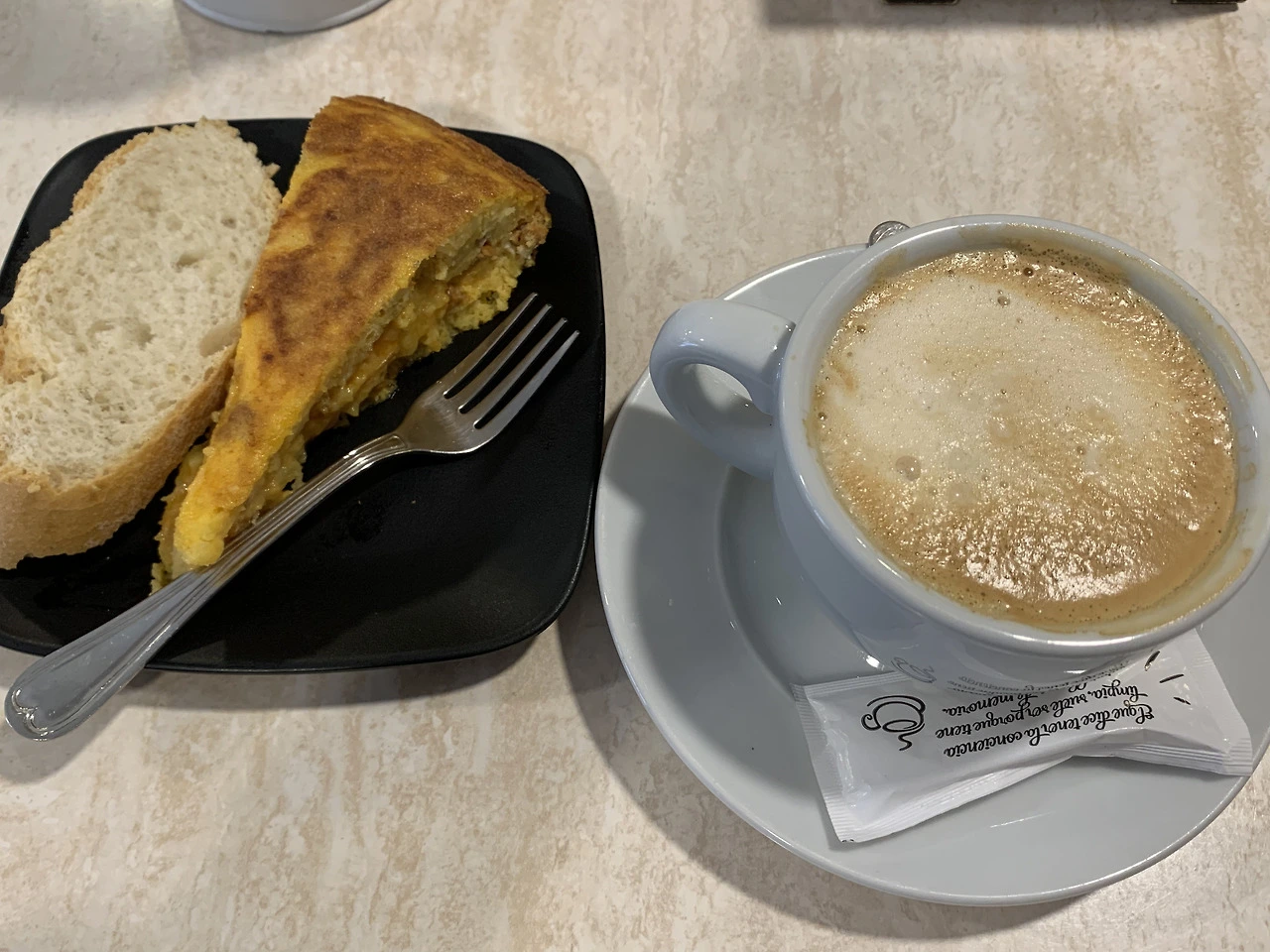 아침 내내 먹고 싶었던 또르띠야와 카페 콘 레체를 주문했다.