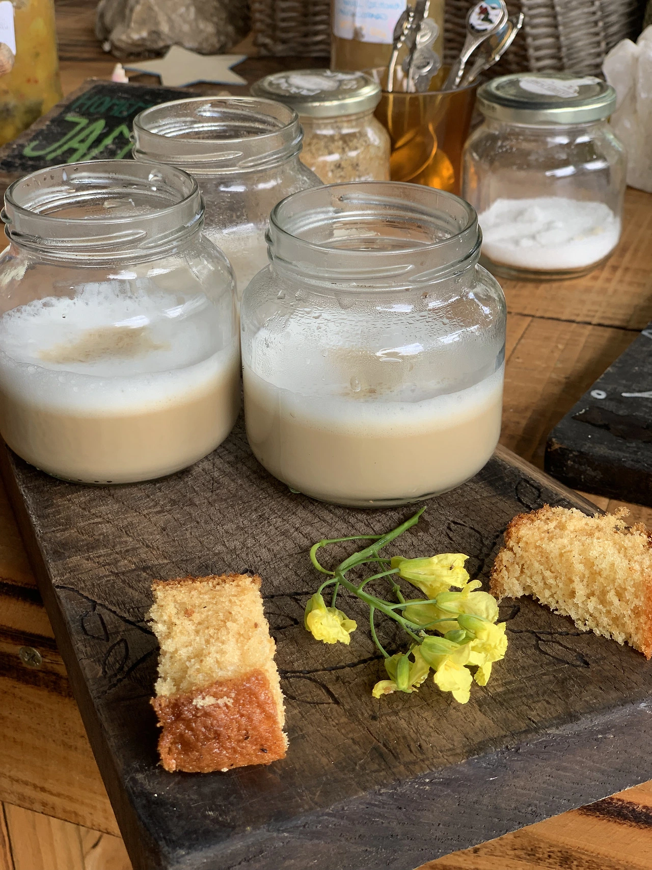 카페콘레체를 꽃과 빵과 함께 담아서 가져다주셨다.