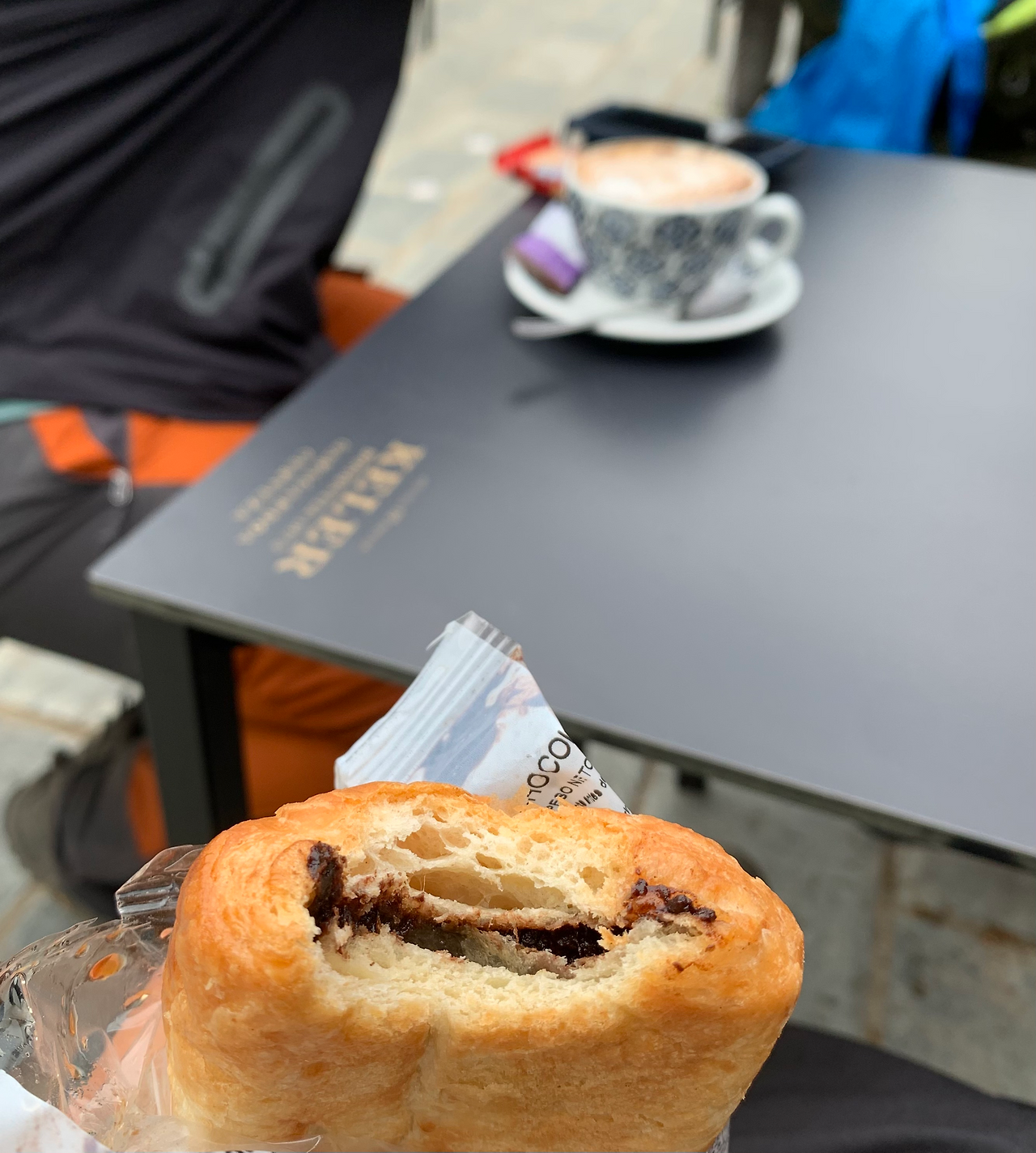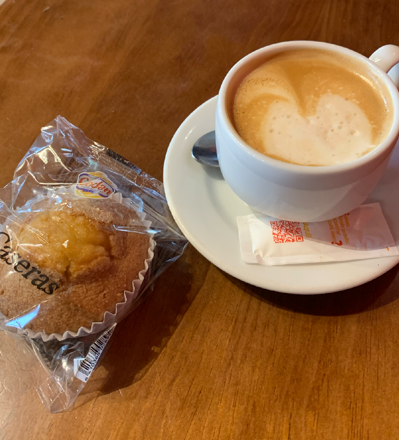 잔뜩 지치고 굶주린 채로 들어가 빵과 카페콘레체를 먹었다.