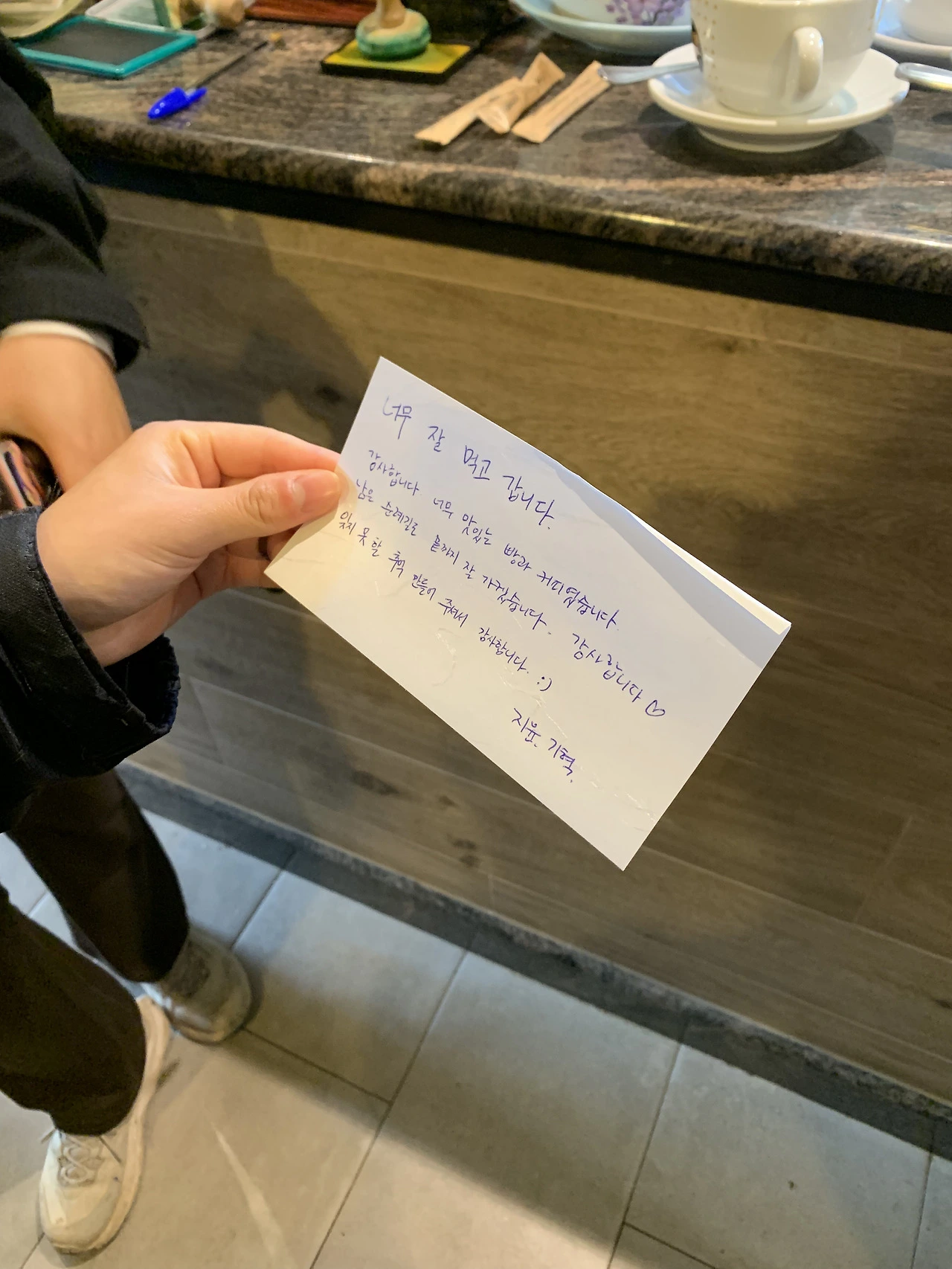 그 후 계산을 할 때 한국 순례자들이 건네고 간 편지와 손수건까지 보여주셨다.