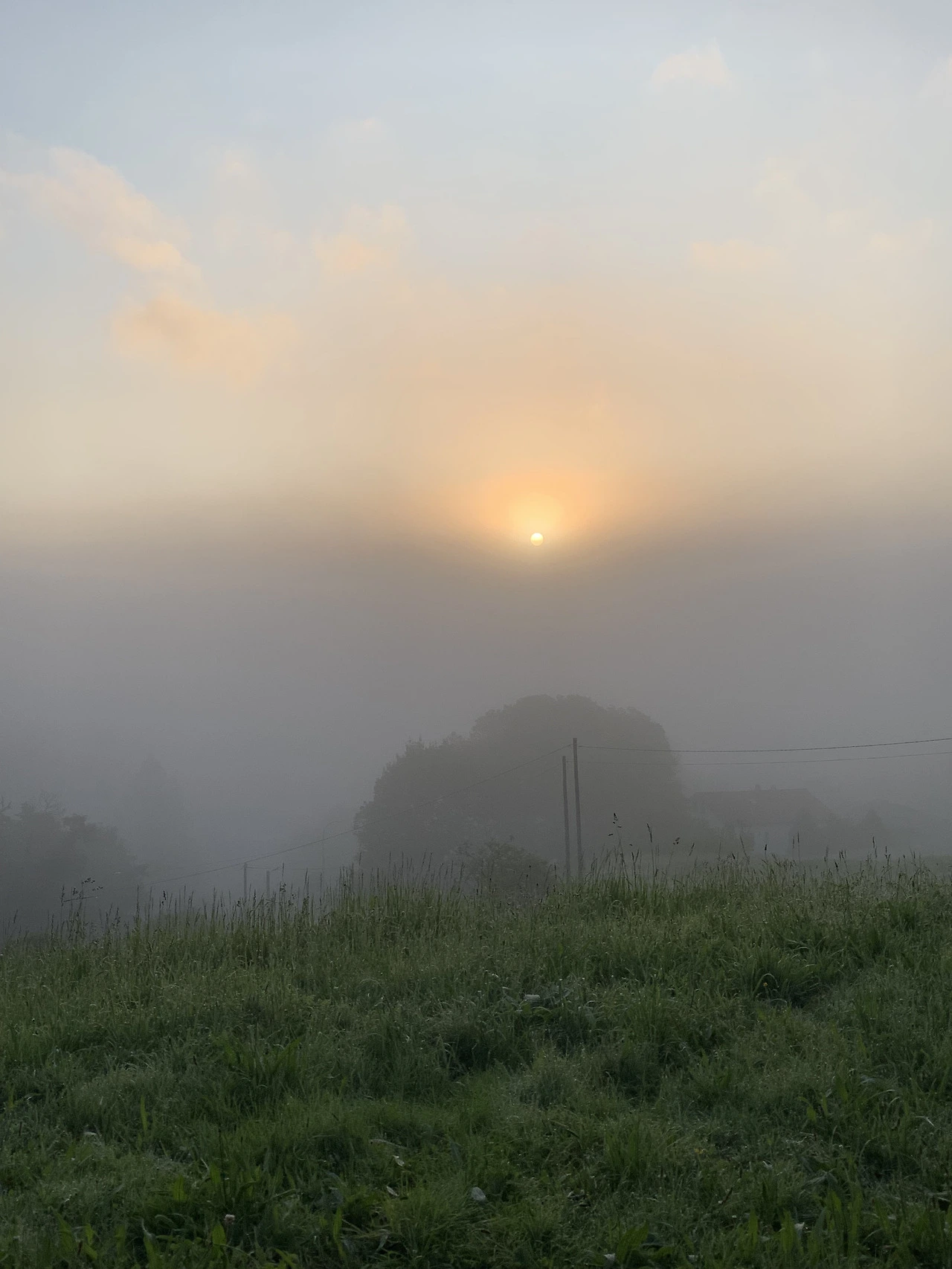 안갯속에 피어오르는 해가 신비로운 광경을 만들었다.