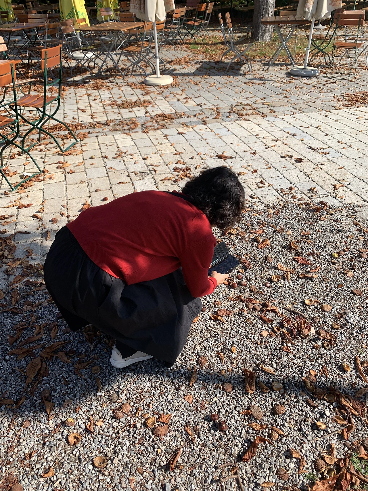 바닥에 떨어진 밤 같은 열매를 보며 엄마는 엄청나게 즐거워했다.