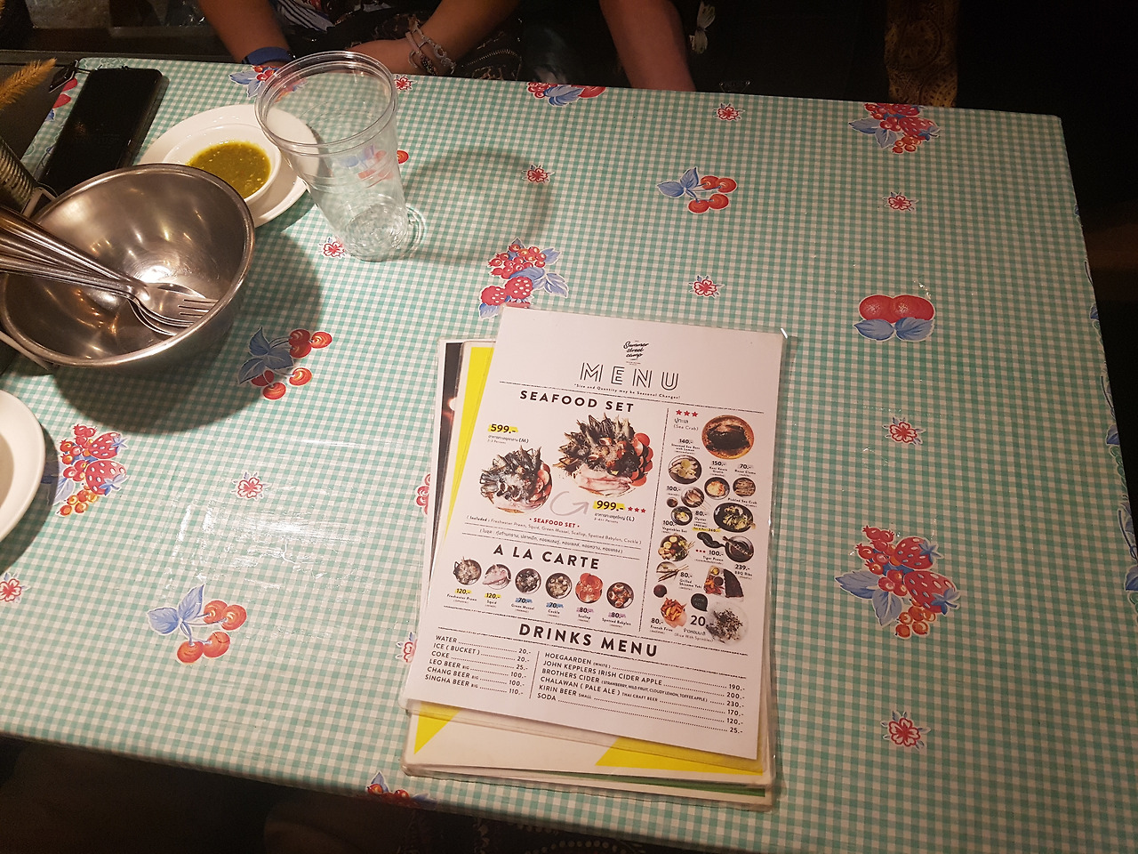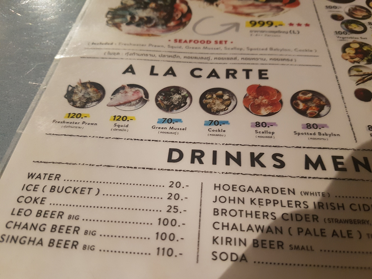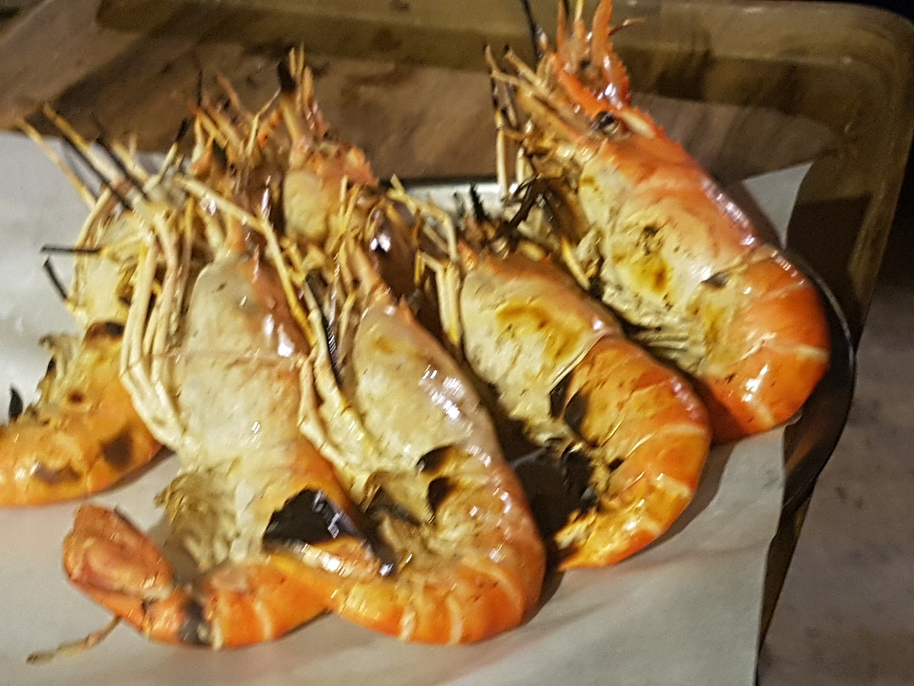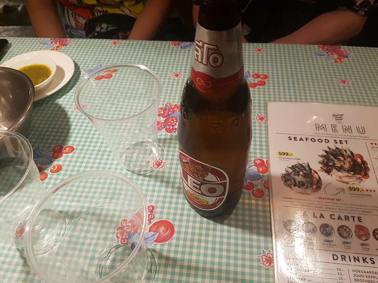 작은 사이즈는 화로에 해산물을 직접 구워 먹고, 큰 사이즈는 해산물이 구워서 나오는데 우리는 4명이라 큰 사이즈를 주문했다. 우리는 푸드트럭처럼 생긴 차 안에 자리를 잡았는데, 야외공연장 라이브는 들리고 바깥보다 시원하고 추가 주문도 편해서 마음에 들었다. 바깥 화로에서 구워진 음식이 나왔다. LEO맥주도 함께 드링킹.