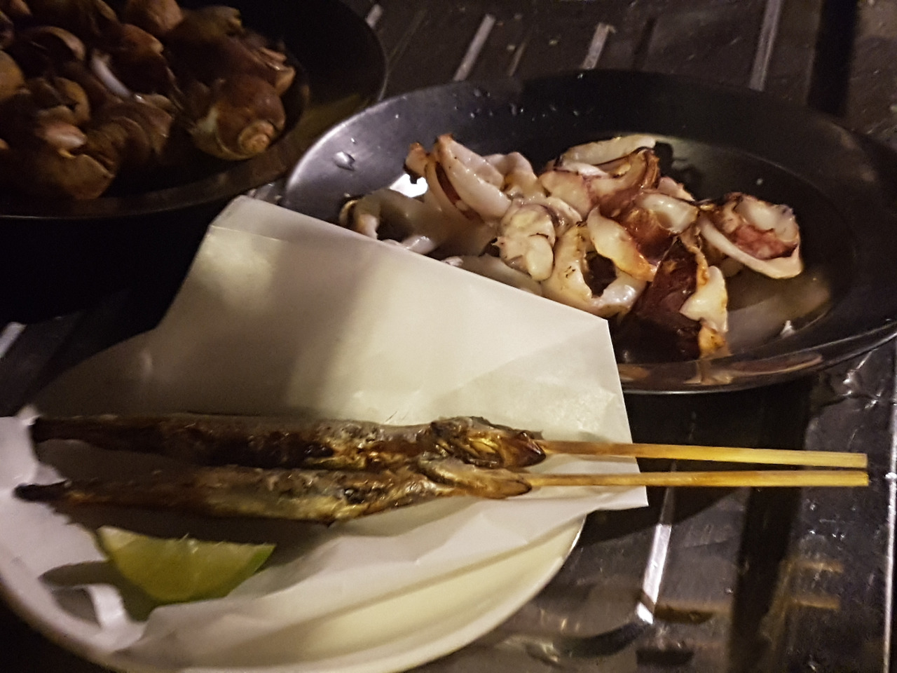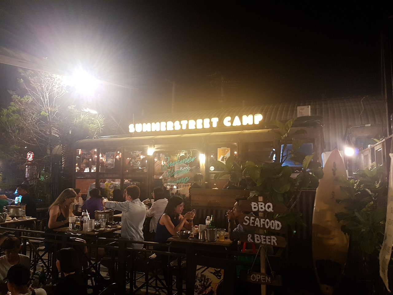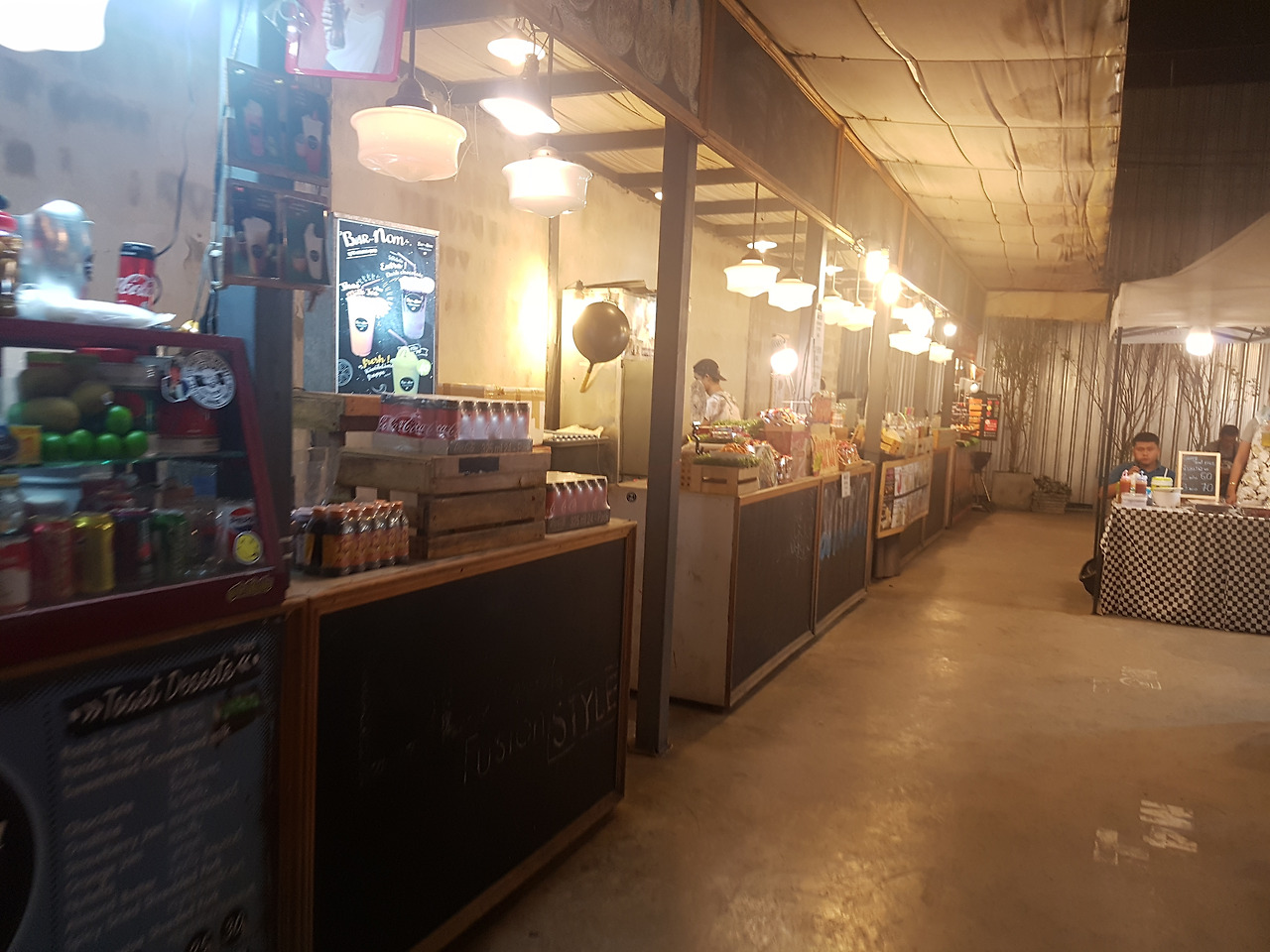 신선하고 맛있었다. 맛있었지만 가격 대비 양이 적고, 큰 사이트를 하나 더 시켜먹어야 할 정도여서 이 가게에서는 이 정도만 먹기로 했다. 의자, 테이블이 작고 불편하긴했지만 야외라이브음악에 빈티지마켓, 그것도 예쁜 식당의 트럭같은 곳 안에서 먹으니 분위기 정말 끝내줬다. 외국인만 많은 식당인 것으로 보아 여행객들에게만 인기 있는 식당으로 보였다. 먹다가 정전이 되어서 어둠 속에 2~3분 보낸 것도 추억이 되었다. 새로운 메뉴를 찾아 야외 푸드코트 쪽으로 걸어가 보았다.