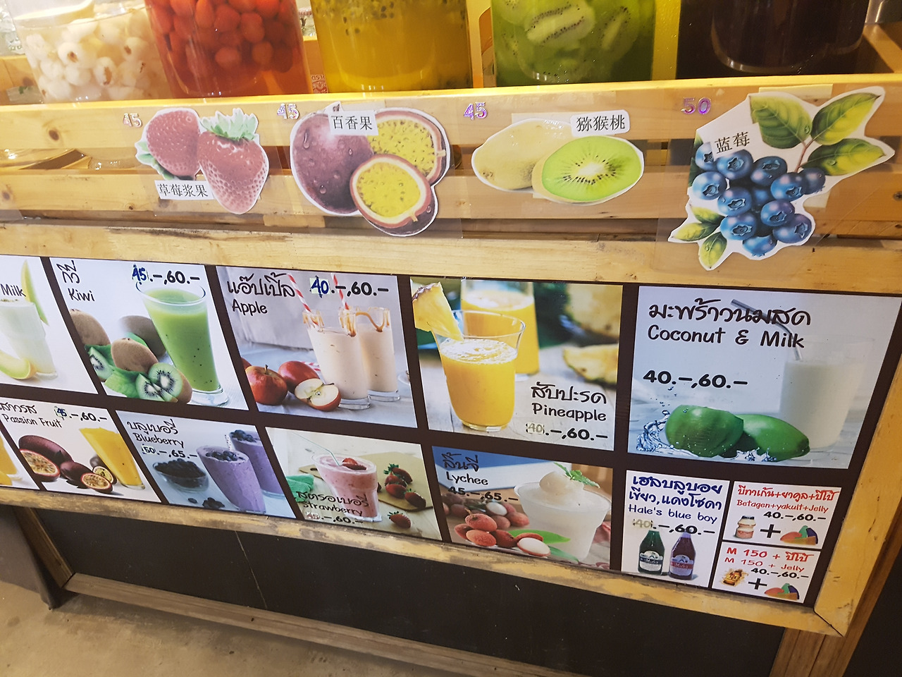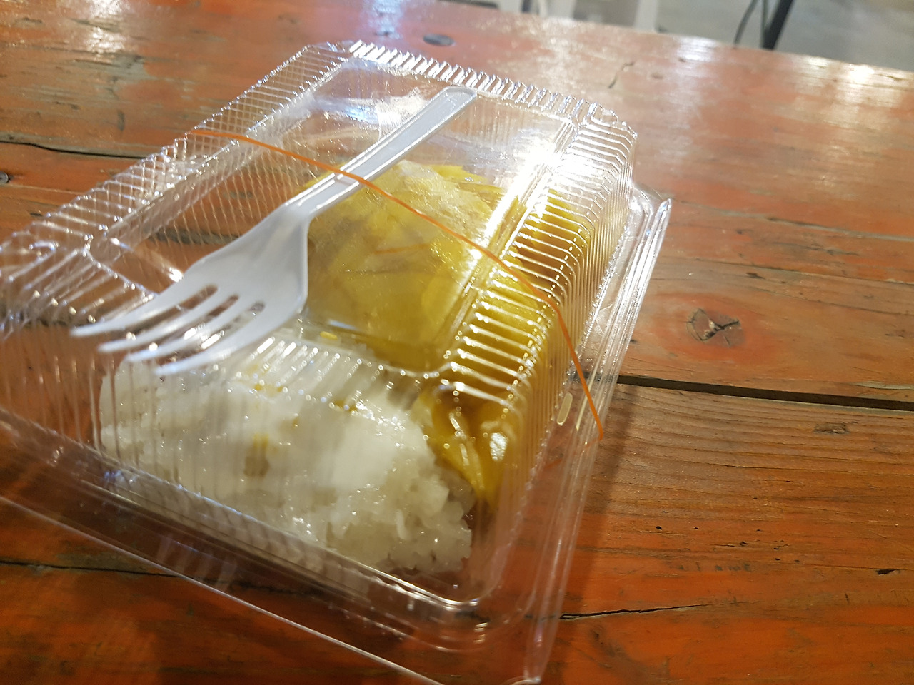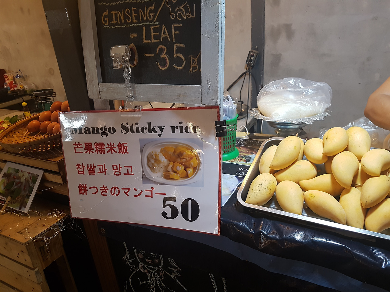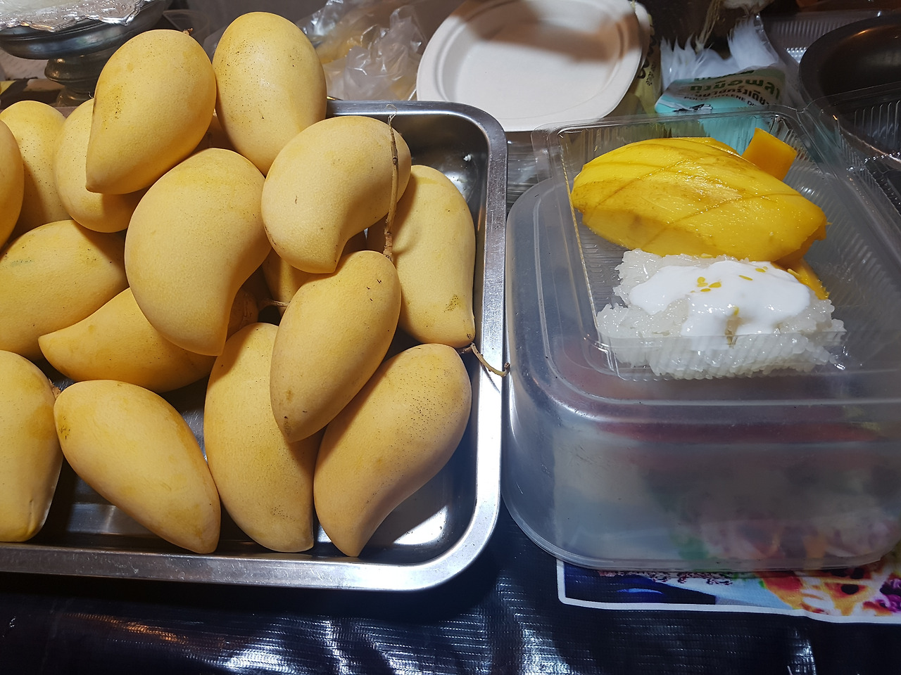 먹고 싶은 꼬치를 고르면 바로 구워준다. 그 사이에 옆 가게에서 땡모반을 두 개씩 샀다. 더울 때는 수박주스가 최고지! 그리고 방콕 하면 1일 1 식 하는 망고스티키라이스도 옆 가게에서 함께 주문했다. 망고밥은 먹고 나서 하나 더 구입했다. 디저트로는 이만한 게 없다.