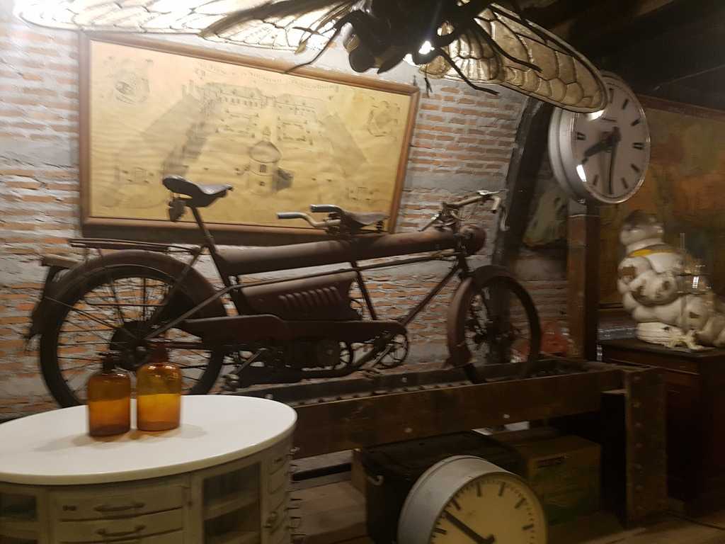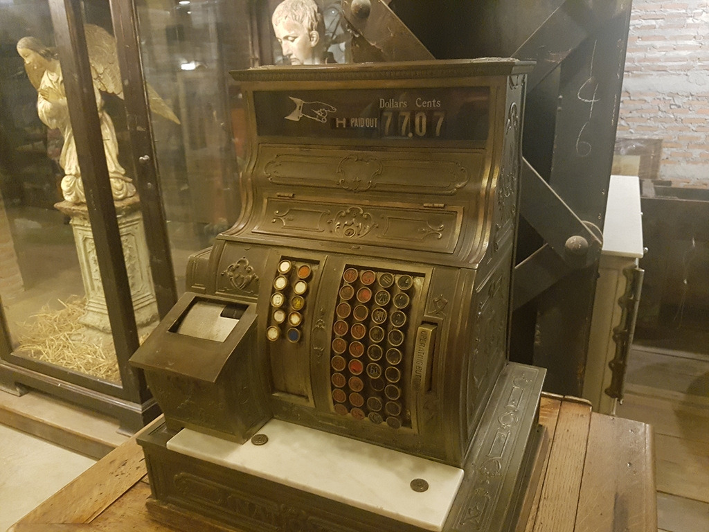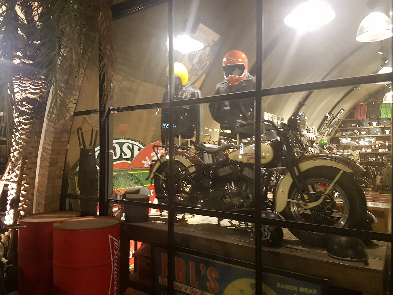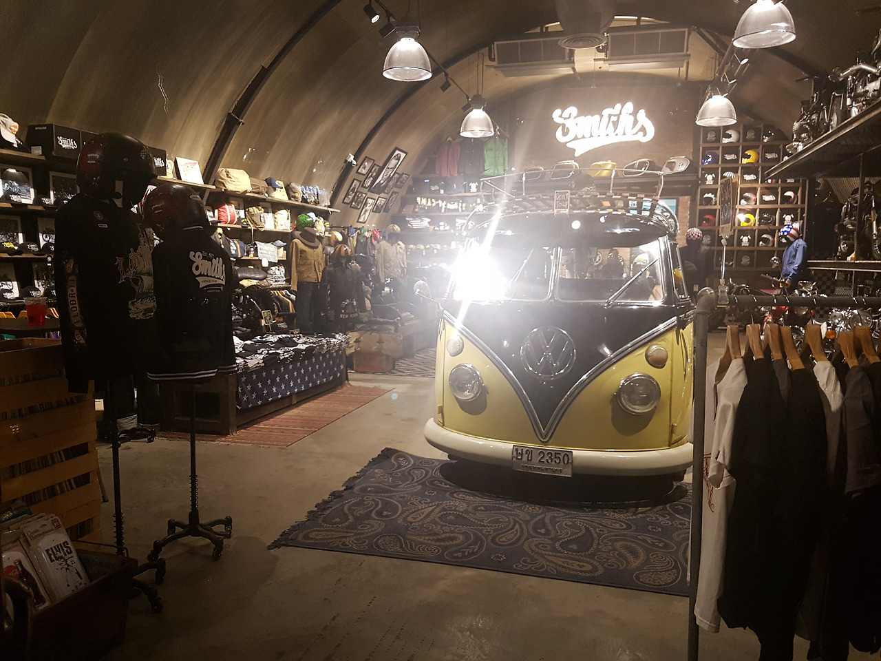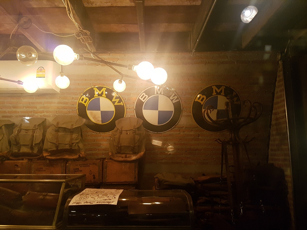 한쪽 섹션으로 가면 중고 물품들이 전시되어 있다. 직접 대부분 직접 만질 수는 없고 유리 안에 전시되어있다. 좀 전에 짜뚜짝그린빈티지마켓에서 봤던 판매용 빈티지 제품들과는 큰 차이가 있다. 여기에 있는 건 정말 제대로 보여주는, 그래서 빈티지 애호가들이 열광할 곳이다. 현지인들도 사진 촬영하고 있기도 하고, 이곳을 배경으로 쇼핑몰 촬영을 하는 현지인들도 있었다. 다양한 크기의 조명, 태국 전통옷을 입혔을 듯한 인형 모형, 군용 배낭, BMW앰블럼의 변천사, 금전출납기, 시계, 복고풍카메라, 브랜드 포스터, 자전거까지 있다.