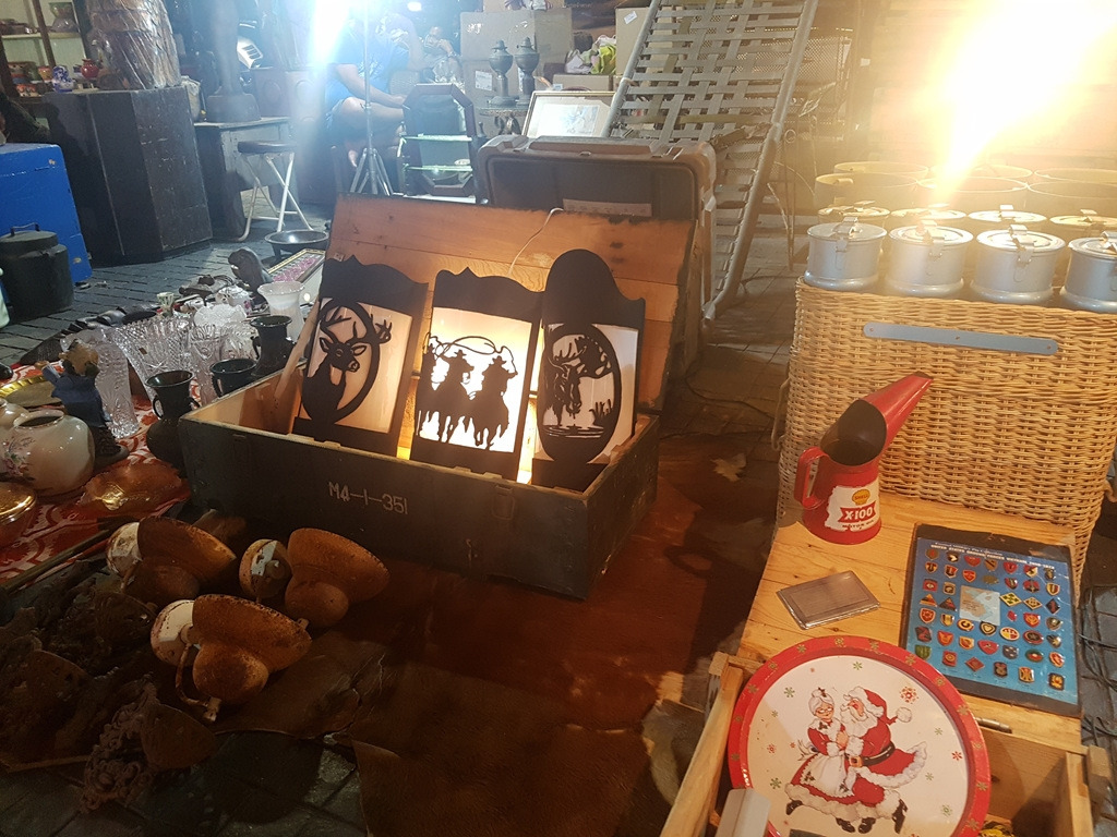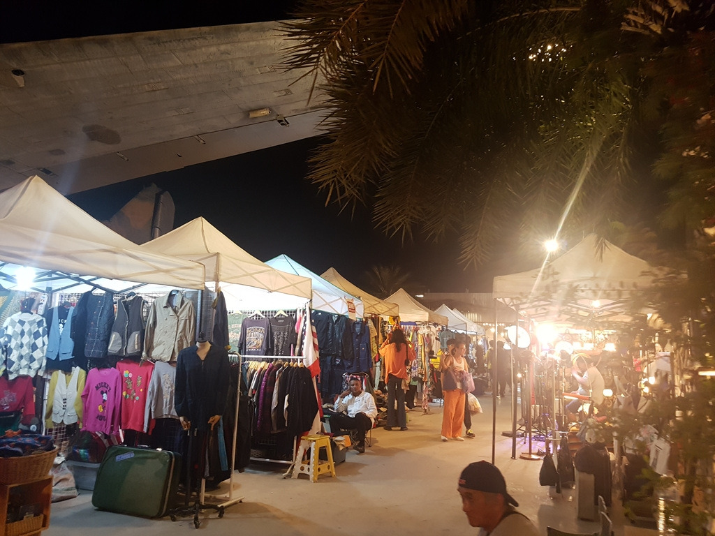 금요일 저녁 우리는 DD mall에 위치한 짜뚜짝 그린 빈티지 마켓부터 빈티지가게들이 줄지어있는 길을 지나 캠프빈티지까지 느리게 걸었다. The Camp Vintage Flea Market의 주소는 460 Kamphaeng Phet 1 Allay, The camp vintage flea market Hangar 3, Room 4 Chatuchak, Bangkok 10900이다. 짜뚜짝 그린 빈티지 마켓이 DD Mall에 있었으니까 걸어서 7분~10분 걸렸다. 화요일 - 일요일 오후3시-Midnight 이라고 나와있지만 정보를 검색해보니 평일에 가게들이 천천히 문을 열고 이곳은 조명이 들어와야 분위기가 제대로 나기 때문에 5시 이후~밤10시로 생각하는 것이 좋겠다. 금토일은 오후3시-Midnight 까지이다. 그리고 Out Door Zone 은 매장이 아니라 매장 사이사이 임시점포들인데 금,토, 일 오후 5시부터 Midnight 까지니 금, 토, 일 오후5시30분~10시가 가장 핫하다고 볼 수 있다. 이번에가서 사진을 찍어보니 우리가 방문했던 저녁 8시30분은 어두워서 인물사진이 잘 나오지 않았다. 인생 사진 건지고 싶다면 오후 6시~7시 사이를 적극 추천한다.