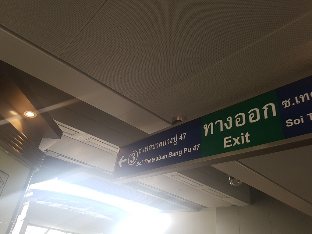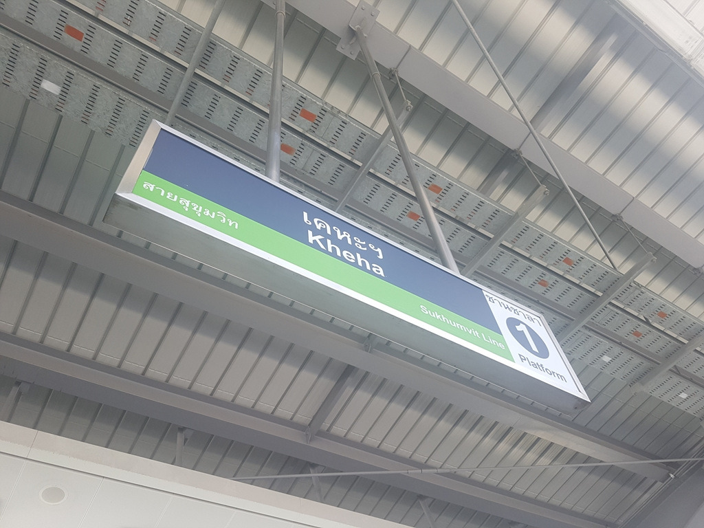앗. SAMRONG 역에서 사람들이 많이 탄다. 뭐지? 이상한 느낌에 새로 탄 사람에게 케하 가는 것 맞냐 물으니 이 BTS는 SAMRONG 역에서 다시 방콕 시내 쪽으로 간다고! 숙소에 다시 갈 뻔했다. SAMRONG 역에 내려서 맞은편에 오는 것을 타면 다시 Khe ha 역으로 갈 수 있다. 몇 달 전 다녀온 사람의 말에 의하면 출퇴근 시간은 이렇게 갈아타야 하지만, 한가한 시간은 이제 갈아타지 않고 SAMRONG 역에서 쭉 Khe ha역까지 간다고 하니까, SAMRONG 역쯤에서 긴장하고 있길 바란다. 내가 갔을 때는 시내로 돌아올 때도 SAMRONG 역에 내려서 반대편 차로 갈아탔다.