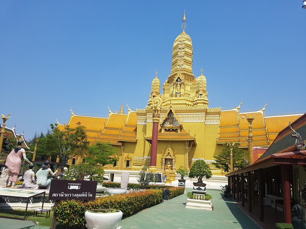 지난 2019년 2월 방콕 여행에서는 안 가본 관광지를 가보는 것이 계획 중 하나였다. 가까운 휴양지인 후아힌이나 경관이 좋다는 에라완폭포는 3시간 30분 정도 이동을 해야 해서, 너무 먼 거리보다 BTS(태국 지상철)로 이동 가능한 곳으로 찾아보았다. 폭풍 검색 후 선택한 곳이 무앙보란 Mueang Boran이다. 태국 지도 모양과 비슷하게 만든 넓은 땅에 태국의 다양한 문화역사 유산 116점을 복원, 축소해서 전시한 곳으로 태국에 있는 왕궁, 사원을 하루 만에 다 볼 수 있다. 2월 여행에서 가장 기억에 남는 곳이 이곳 무앙보란이고, 사진이 제일 잘 나온 곳도 무앙보란이라 시간적 여유가 있다면 꼭 가보기를 추천한다. 공원에 예쁜 꽃들이며 나무가 많아서 힐링하는 기분도 들었다.