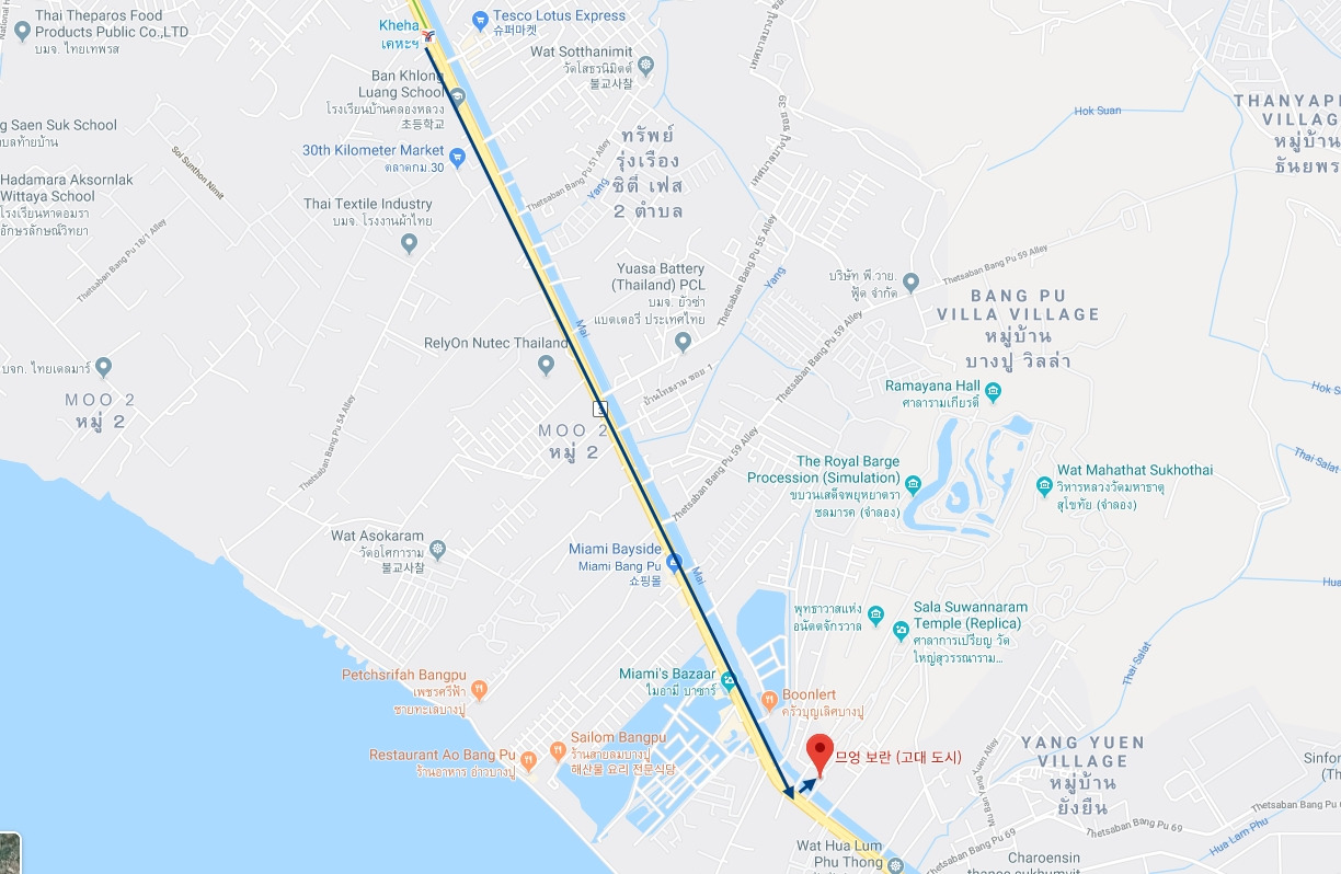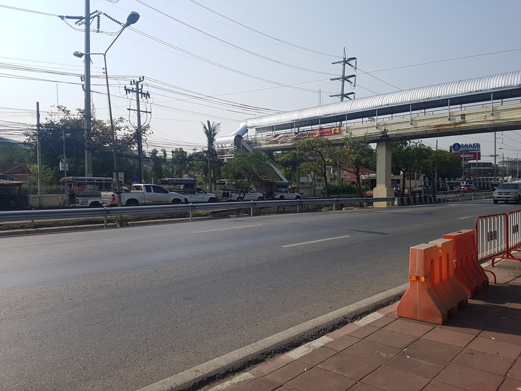 무앙보란에서 다시 케하역으로 가는 방법. 입구에서 나와서 오른쪽 방향으로 6분 정도 걸어가면 육교가 보인다. 육교를 건너서 케하역에서 탔던 36번 썽태우를 타면 1인당 8밧에 갈 수 있다. 나의 일정은 케하역 -> 칫롬역이었는데, 내가 갔던 기간은 돌아가는 케하역도 마찬가지로 삼롱역에서 내려서 맞은 편 차로 갈아타야 방콕 시내로 나갈 수 있었다.
