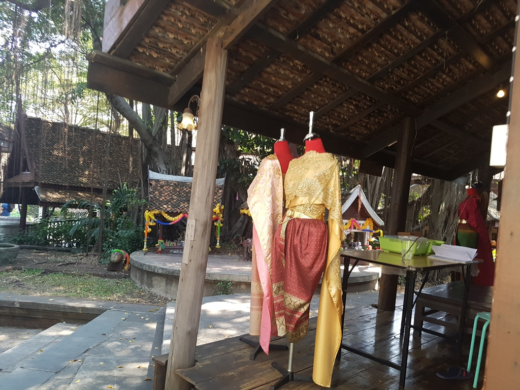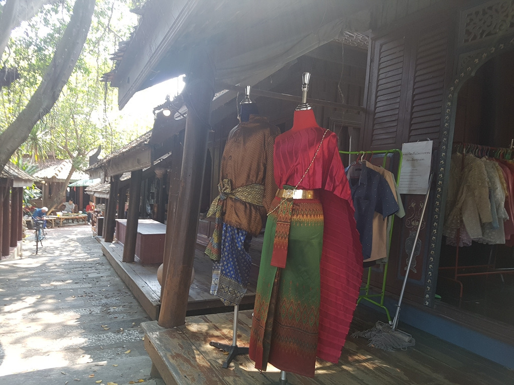 태국 전통의상은 춧타이 라고 부르는데, 여성 보통 파눙, 쫑끄라벤, 싸바이를 남성은 쫑끄라벤과 랏차빠댄을 입는다. 여자의상은 치마 형태의 파눙(접어 입는 치마), 바지 형태의 쫑끄라벤, 어깨를 감싸는 싸바이로 이루어져 있다. 싸바이는 주로 한쪽 팔은 감싸고 다른 한쪽 팔은 드러내서 입는다. 남성 의상은 셔츠가 화려하다. 200밧에 빌려준다. 시간제한이 없고 마치는 시간인 6시까지만 반납하면 된다.
