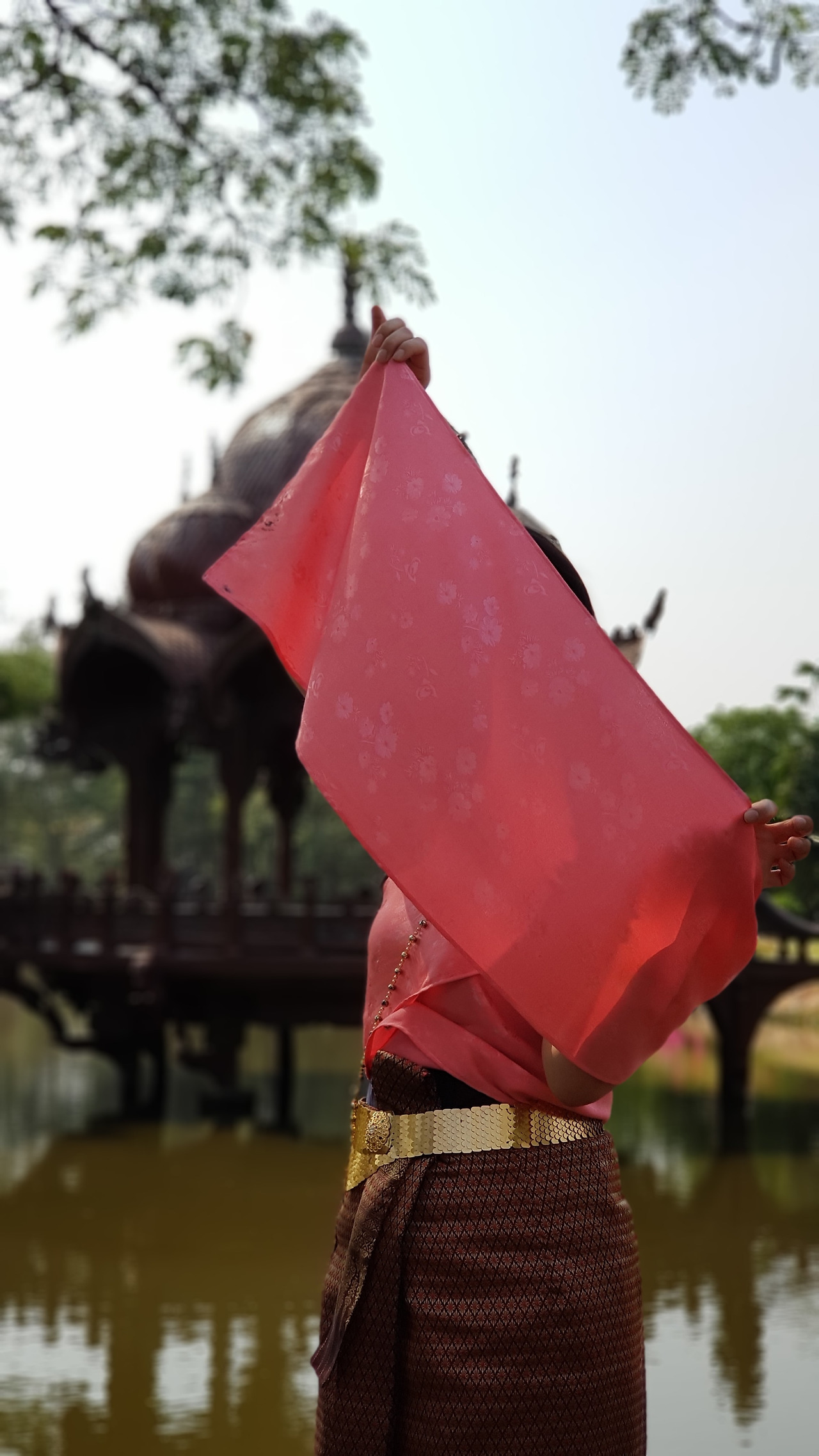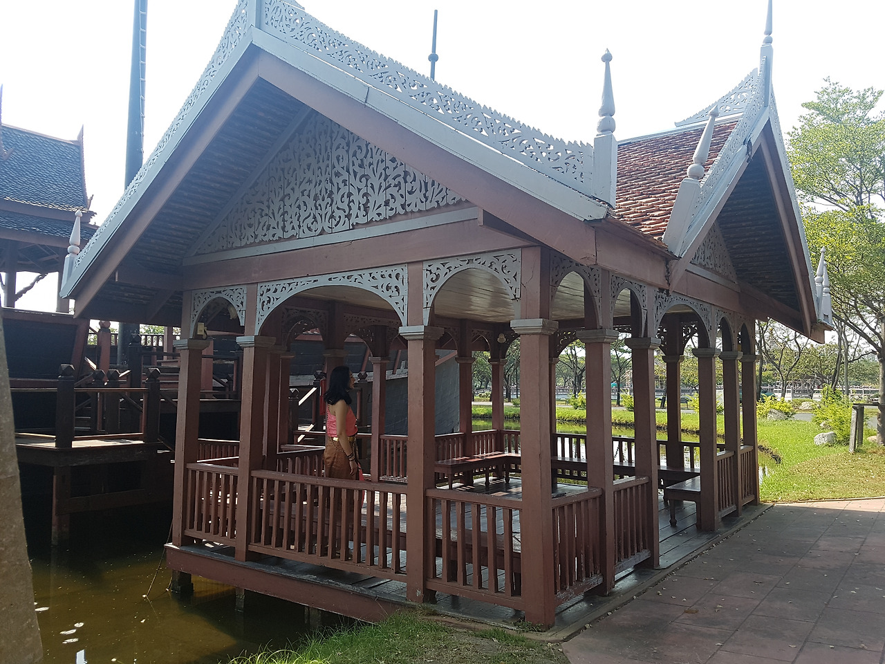 나는 태국 전통의상 입을 때 이 싸바이를 걸치면 정말 기분이 좋아진다. 전생에 태국 사람이 아니었나 싶을 정도로. 방콕에서 인생 사진 찍고 싶으면 1번도 2번도 무앙보란이다. 예쁜 신발을 가지고 왔으면 더 어울렸을 텐데, 카트 타고 다니니 들고 올 걸 그랬나 보다. 많이 더우면 중간에 갈아입으려고 했는데 이왕 더운 거 일반 옷이나 전통의상이나 비슷했다.