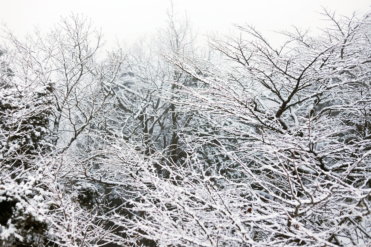 역시 한라산은 겨울이 절정이다. 고도가 높아 날씨 변화의 폭이 크지만, 그만큼 다양한 눈꽃을 보는 재미가 있다. 크리스마스트리용 나무로 유명한 구상나무는 한라산에서 많이 식생하는데, 고도에 따라 솜사탕처럼 탐스러운 눈꽃이 달리기도 하고, 투명하고 섬세한 상고대가 되기도 한다. 성판악 코스의 진달래 대피소를 지나면 구상나무 군락지가 나오는데, 눈꽃으로 만들어진 크리스마스트리 사이를 걸어가는 환상적인 분위기에 취했던 기억이 난다.