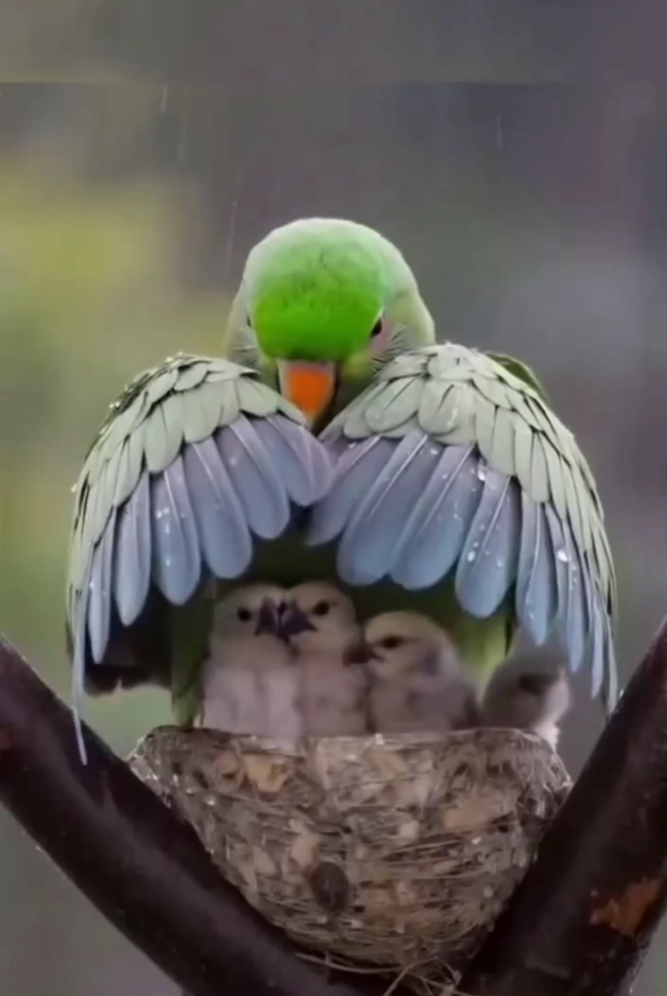 비가 숲을 적시는 날,엄마 앵무새는커다란 날개를 펼쳐우산이 되었다