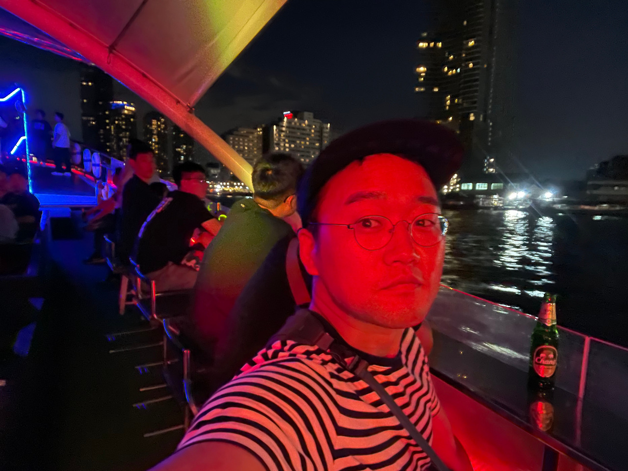 방콕에서의 일정은 김수미 가이드가 추천한 선상 야경파티였다. 전원 다 신청한 옵션에 김수미 가이드는 행복해했다. 말은 그럴싸했지만 코요테와 싸이 노래가 나오는 그냥 배였다. 좋았던 점은 무한으로 맥주를 제공해서 세병이나 먹었던 것이다. 옆자리에 아무 것도 먹지 못하는 설사쟁이들은 야경만 바라볼 뿐이었다.